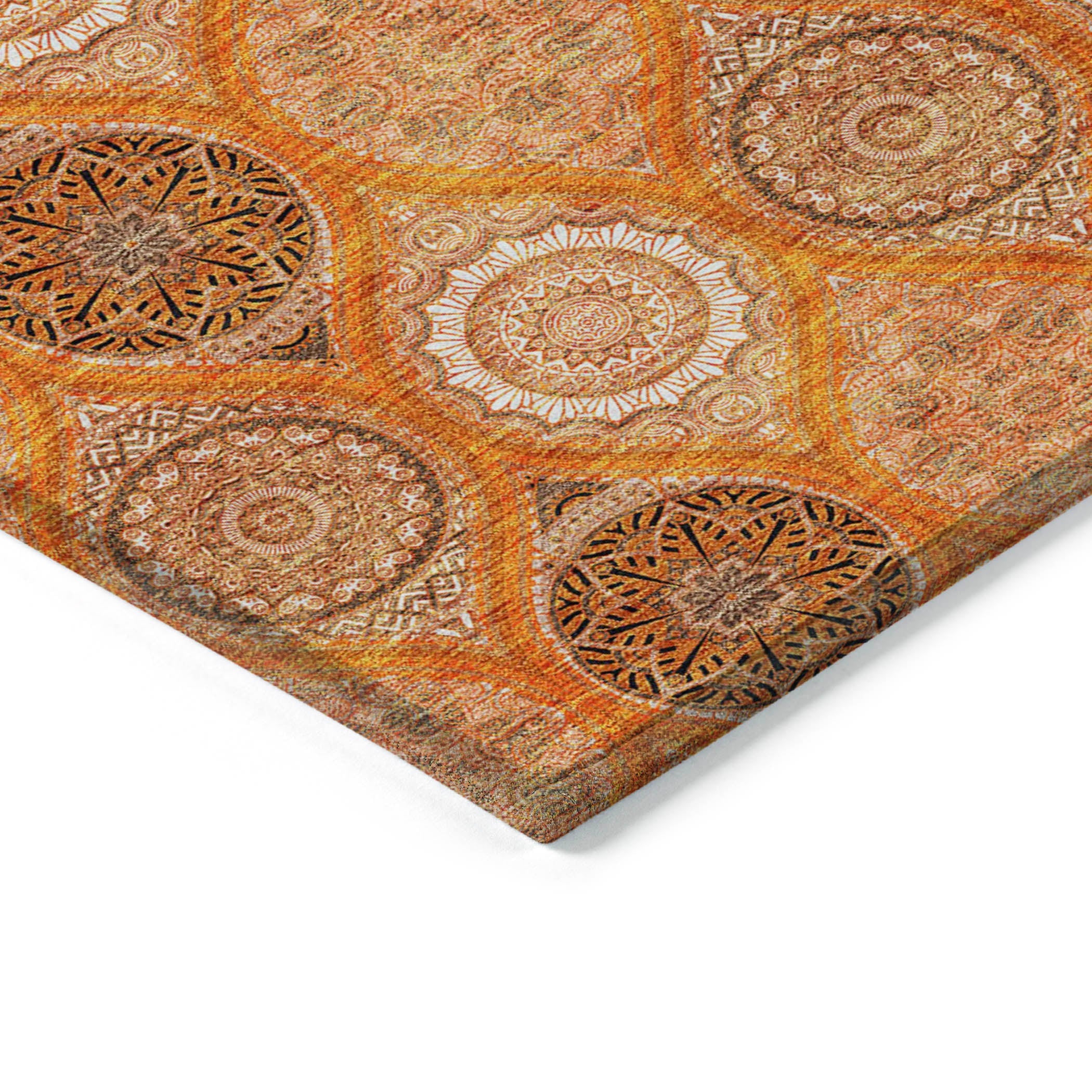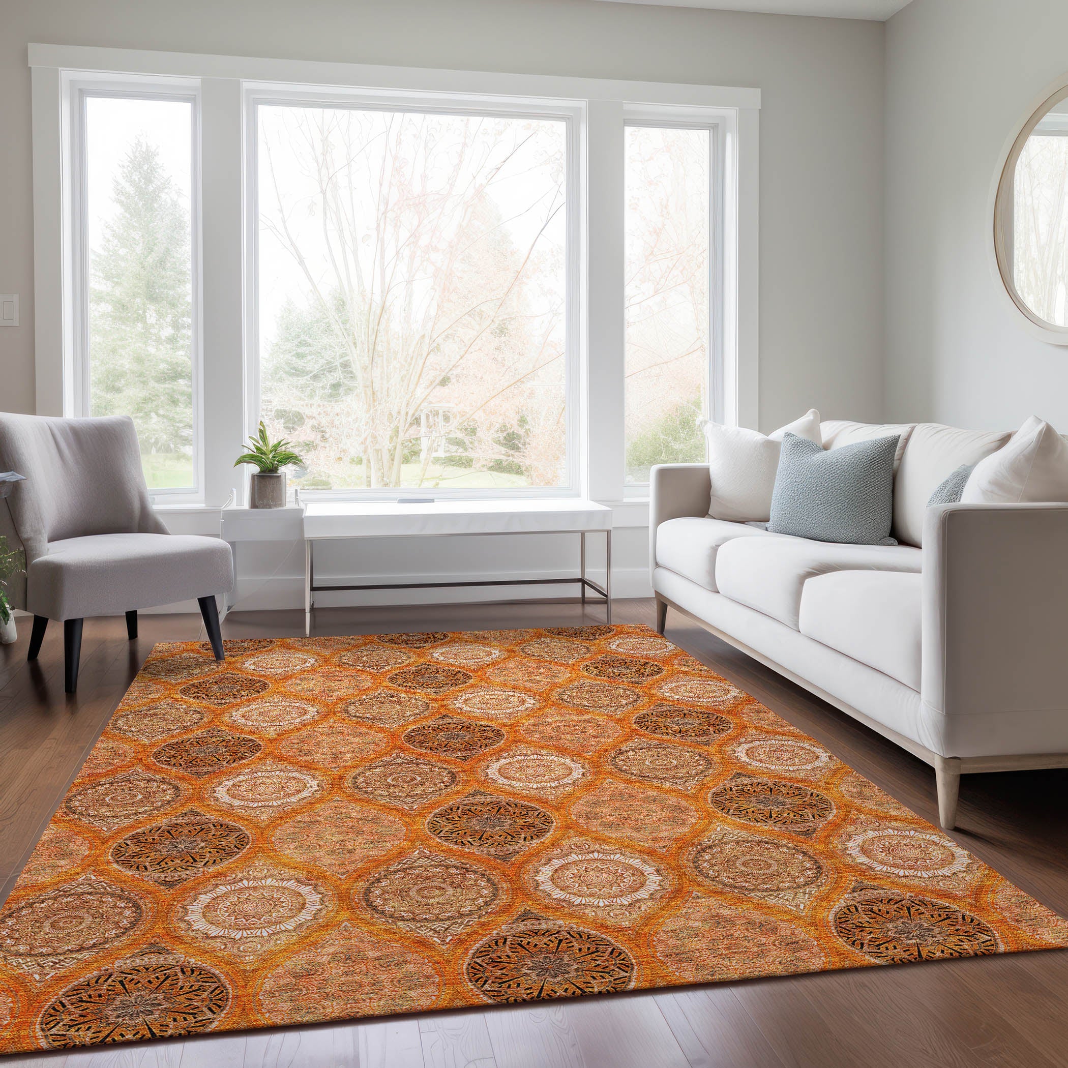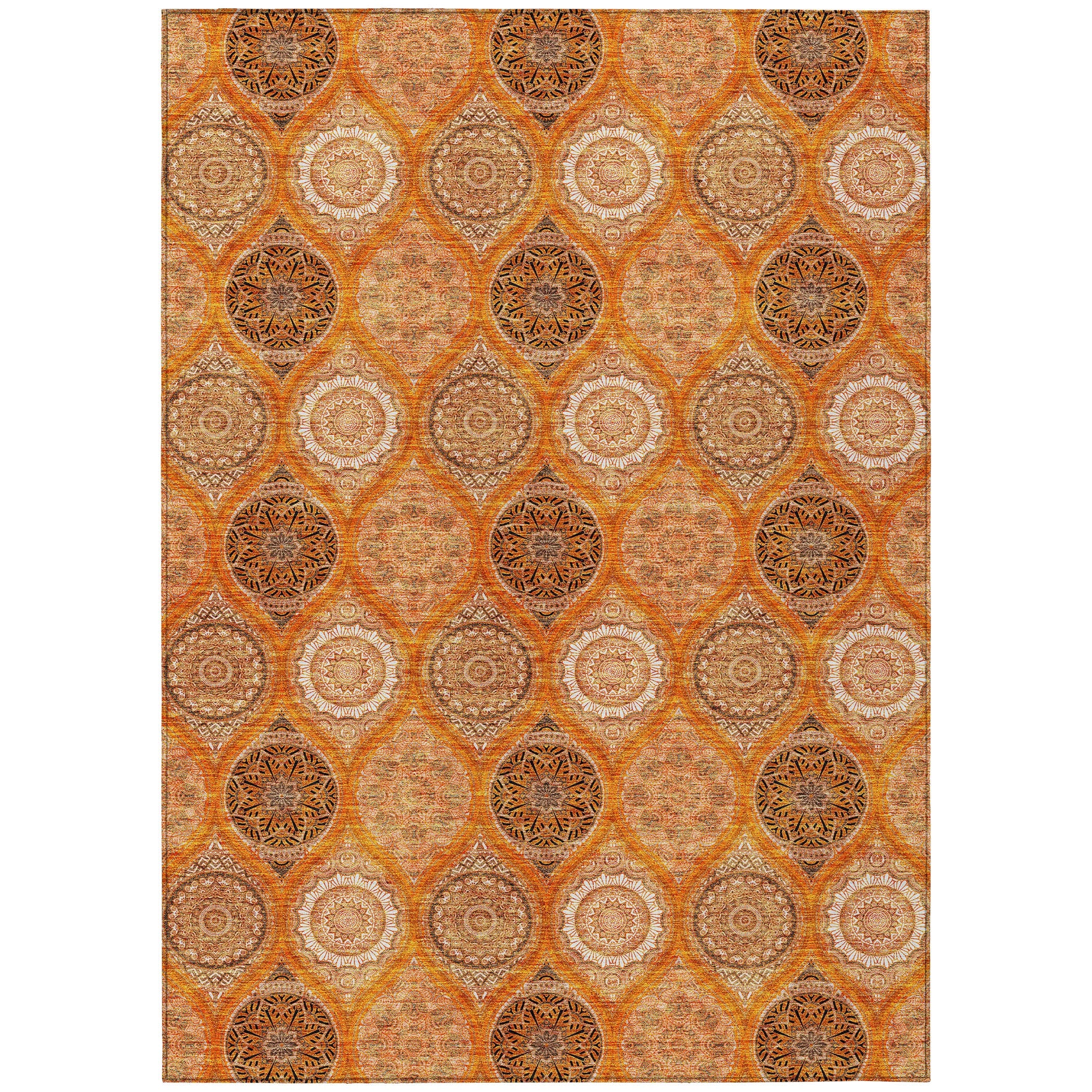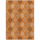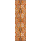 Chantille ACN976 Orange area rug, a stunning piece that combines vibrant stained glass motifs with modern transitional design. This rug is designed to stand out with its intricate details and bold colors, making it a perfect addition to any room.