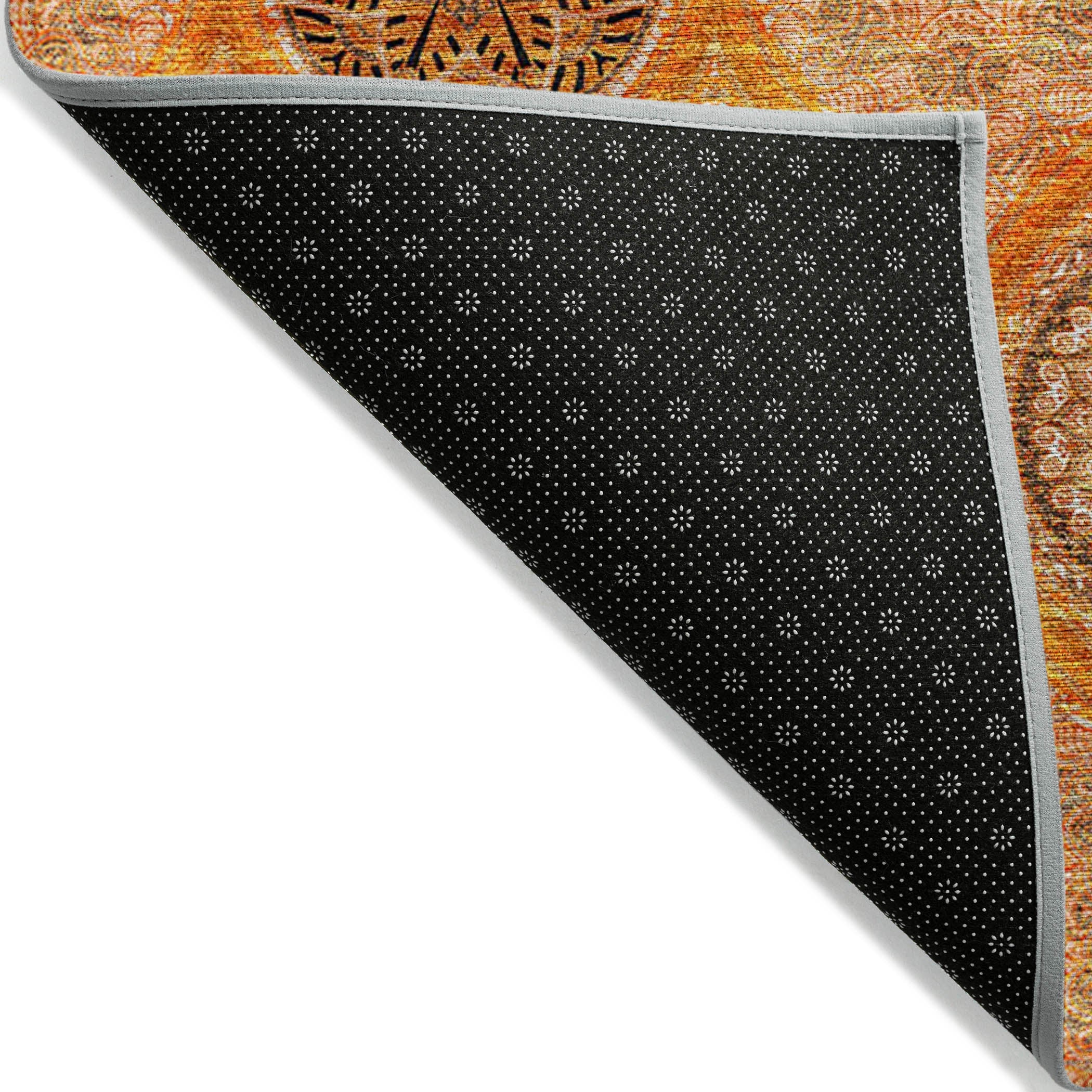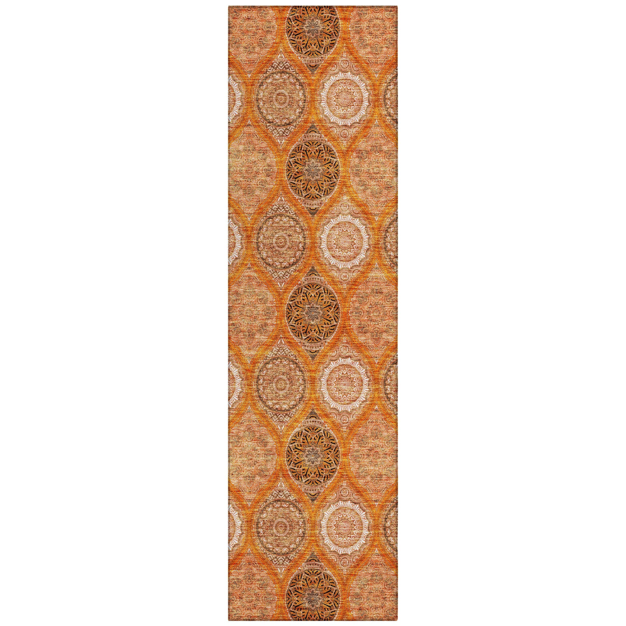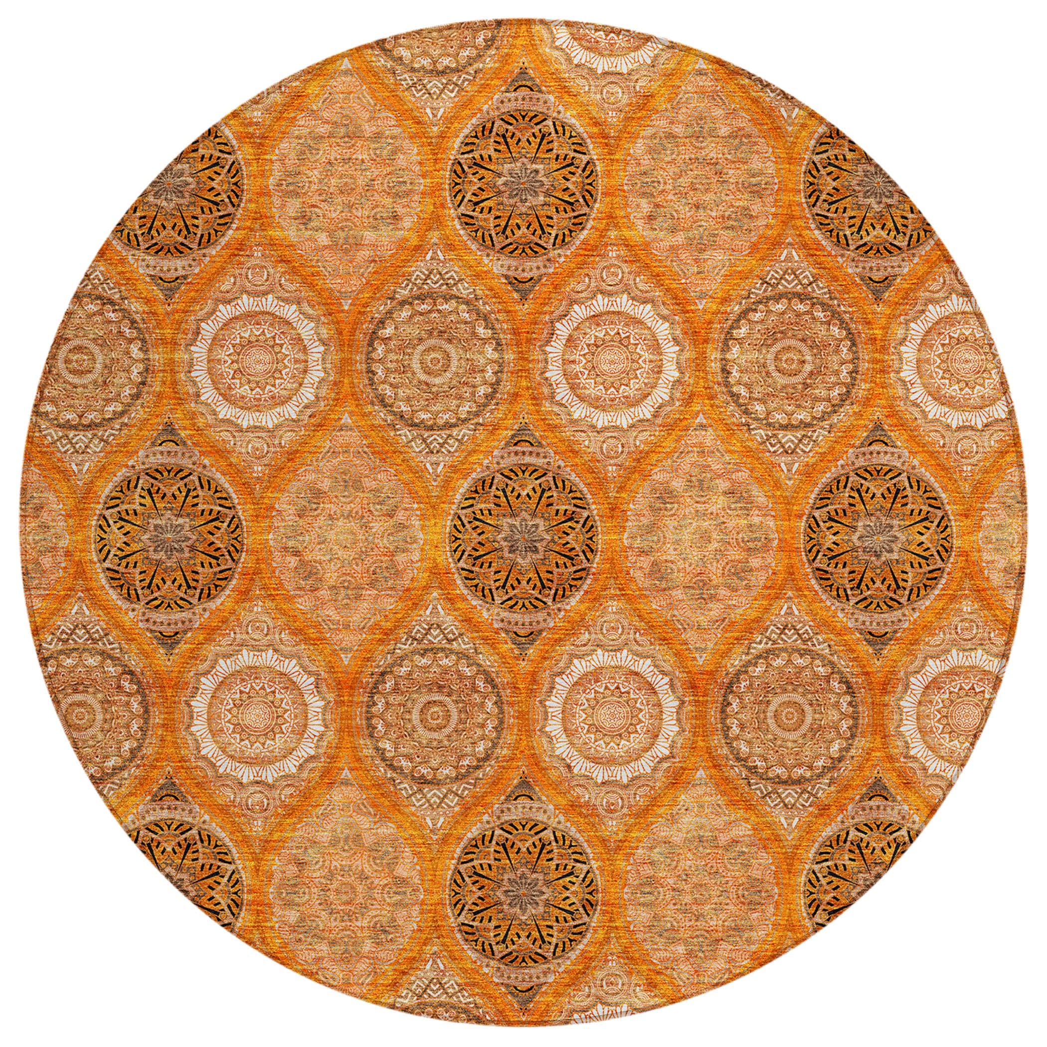 Chantille ACN976 Orange area rug, a stunning piece that combines vibrant stained glass motifs with modern transitional design. This rug is designed to stand out with its intricate details and bold colors, making it a perfect addition to any room.