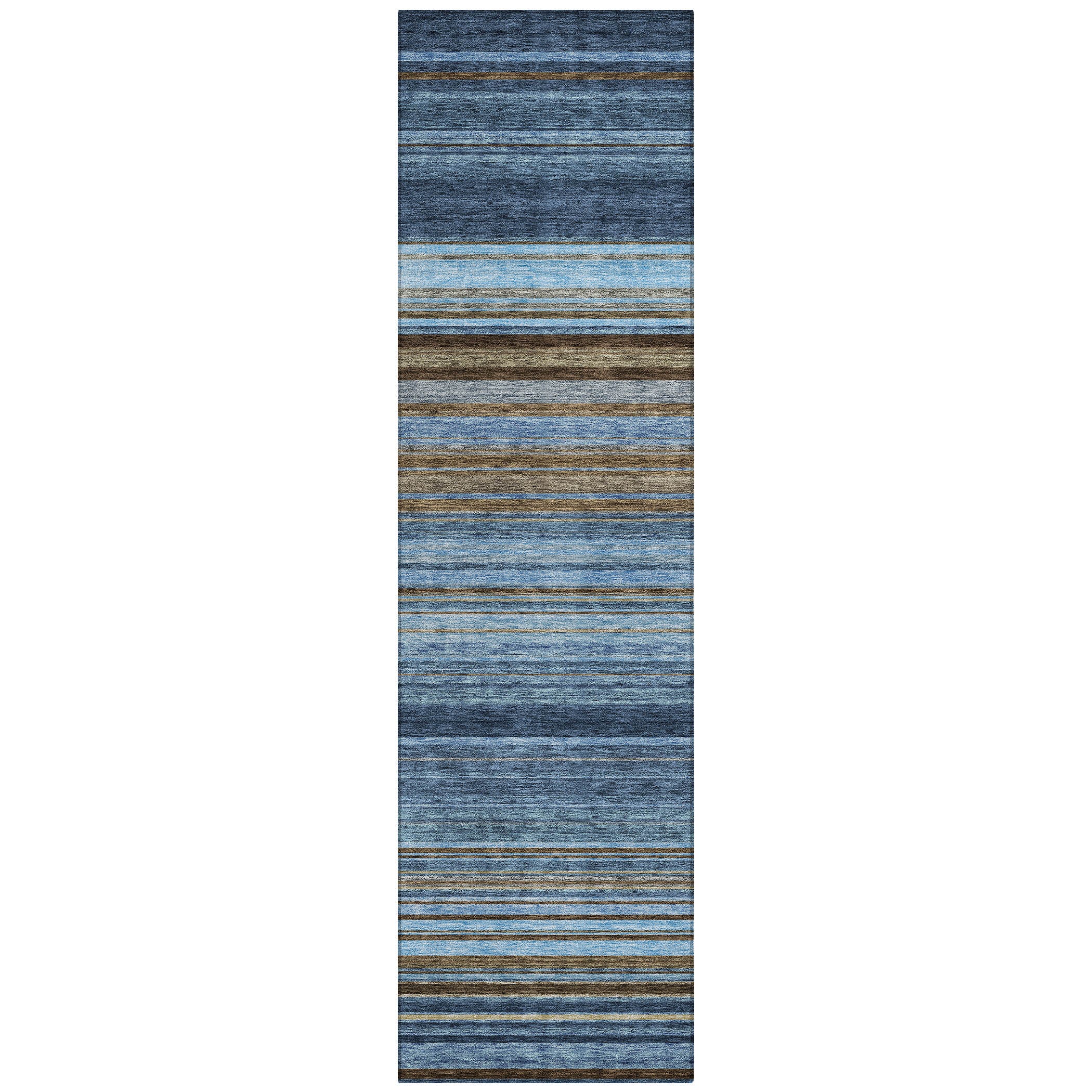 Chantille ACN979 Navy area rug, a versatile piece that seamlessly blends modern and traditional styles. The rug features multi thin horizontal stripes that add a touch of transitional charm to any space. Its UV-stabilized design ensures that the colors remain fresh and vibrant, making it suitable for various indoor areas.