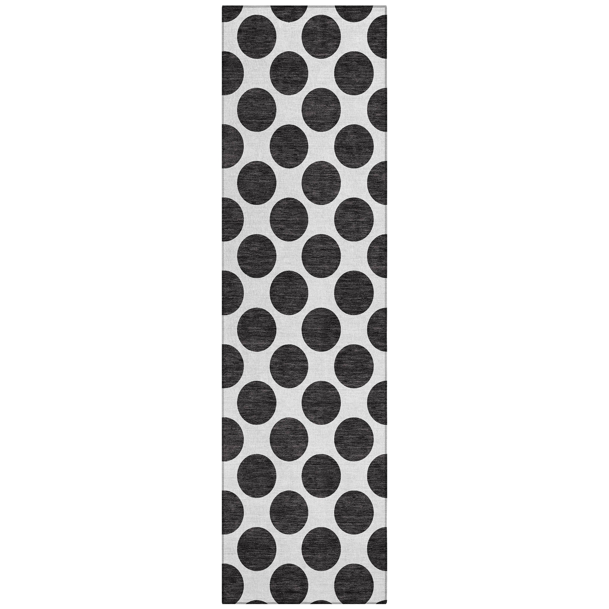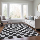 Elevate your home decor with the Chantille ACN980 Black area rug, featuring small solid circles for a modern touch. This versatile piece is designed with a circular motif to add flair to any room, whether indoors or outdoors. The UV-stabilized construction ensures durability, while the ultra-thin profile allows for easy layering. Plus, it's machine-washable, perfect for busy households with pets and kids.