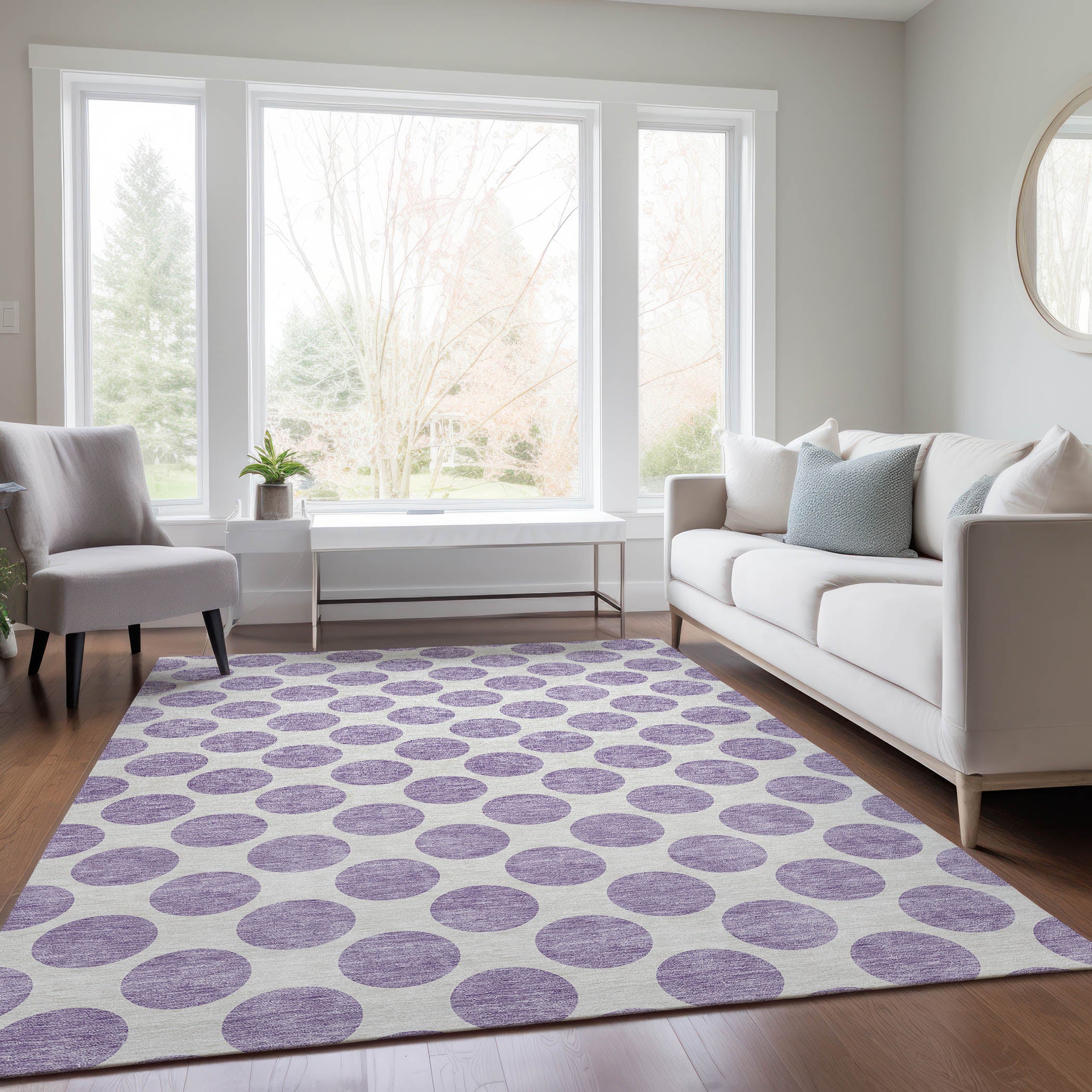 Elevate your home decor with the Chantille ACN980 Lavender area rug. Featuring small solid circles, this rug adds a touch of modern elegance to any room. Its transitional design and circular motif make it a versatile addition to your space.