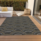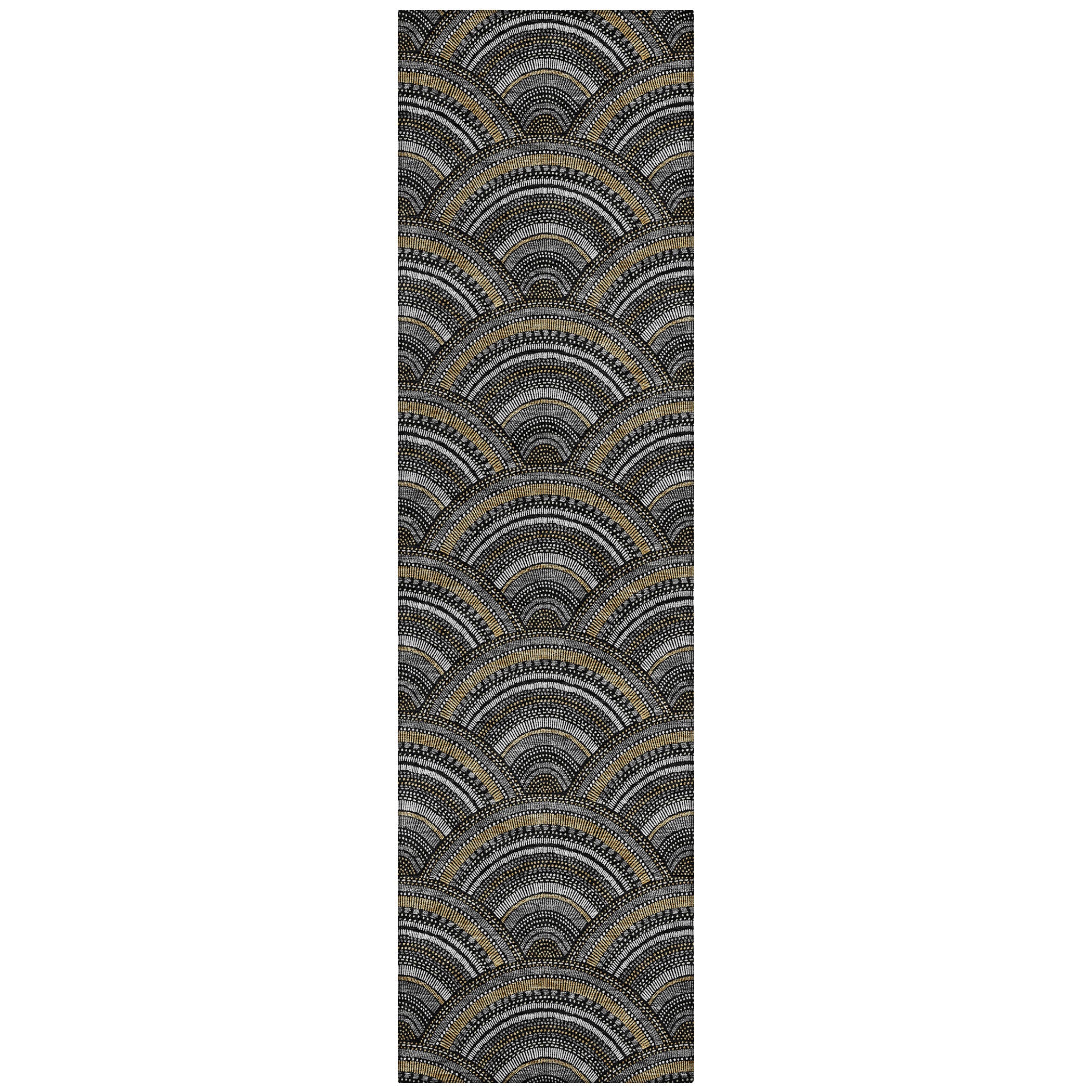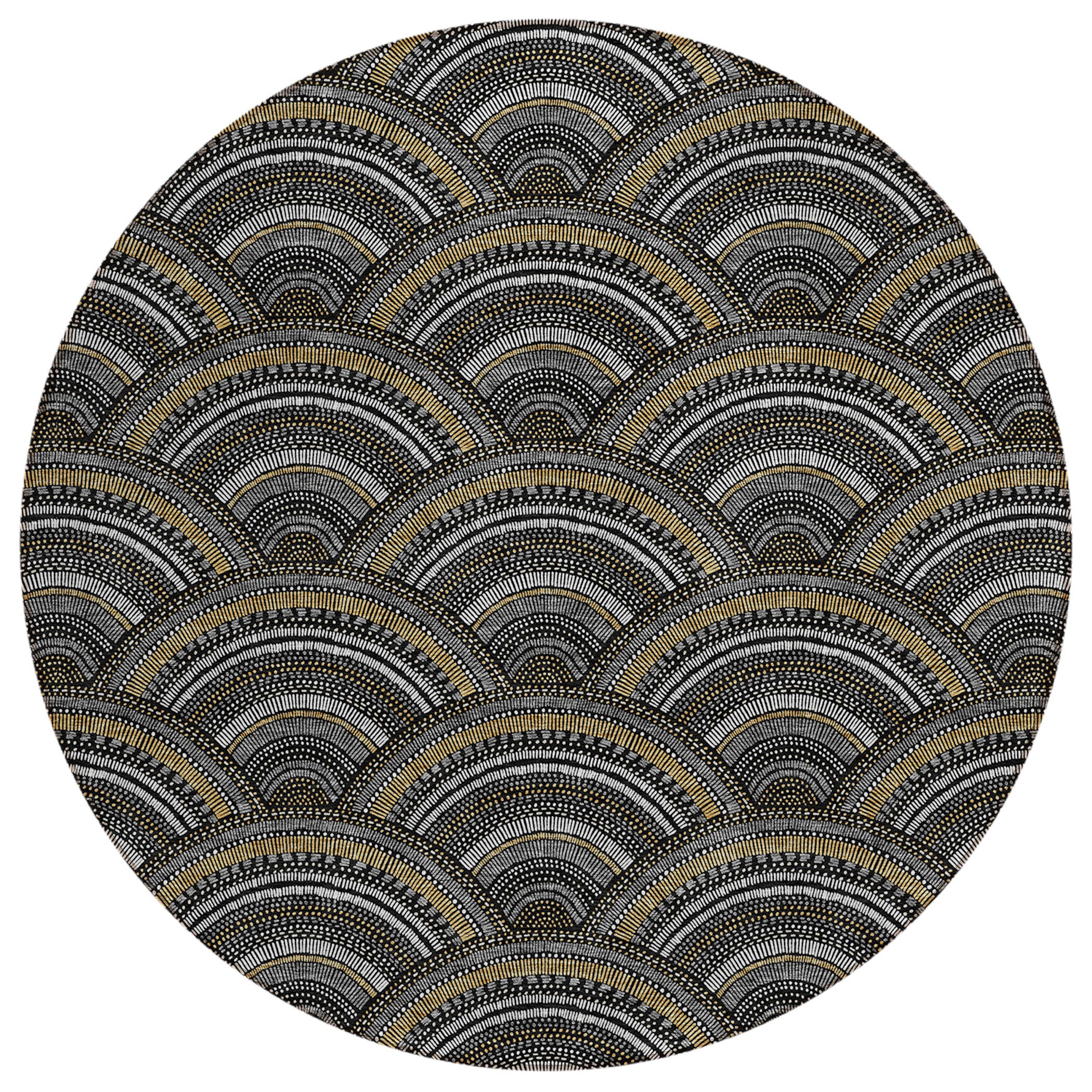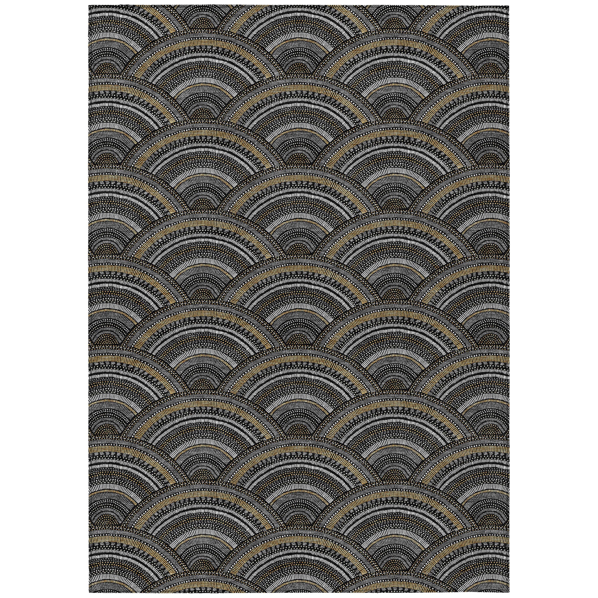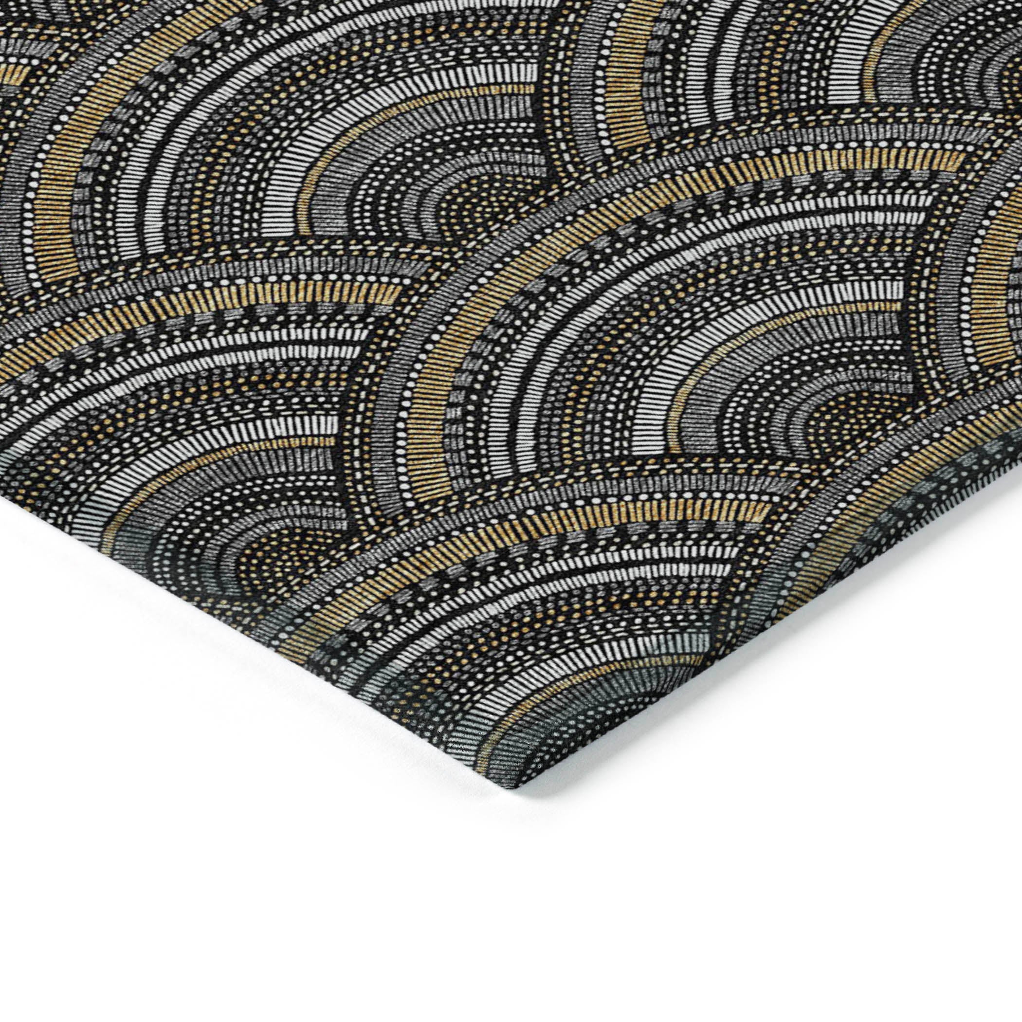 Chantille ACN984 Black area rug, a stylish addition to your home decor. Its smart semi-circle pattern effortlessly blends modern trends with classic transitional style, making it a versatile choice for any room. Designed with UV stabilization, this rug is durable and fade-resistant, ensuring it can withstand both sunlight and shade.