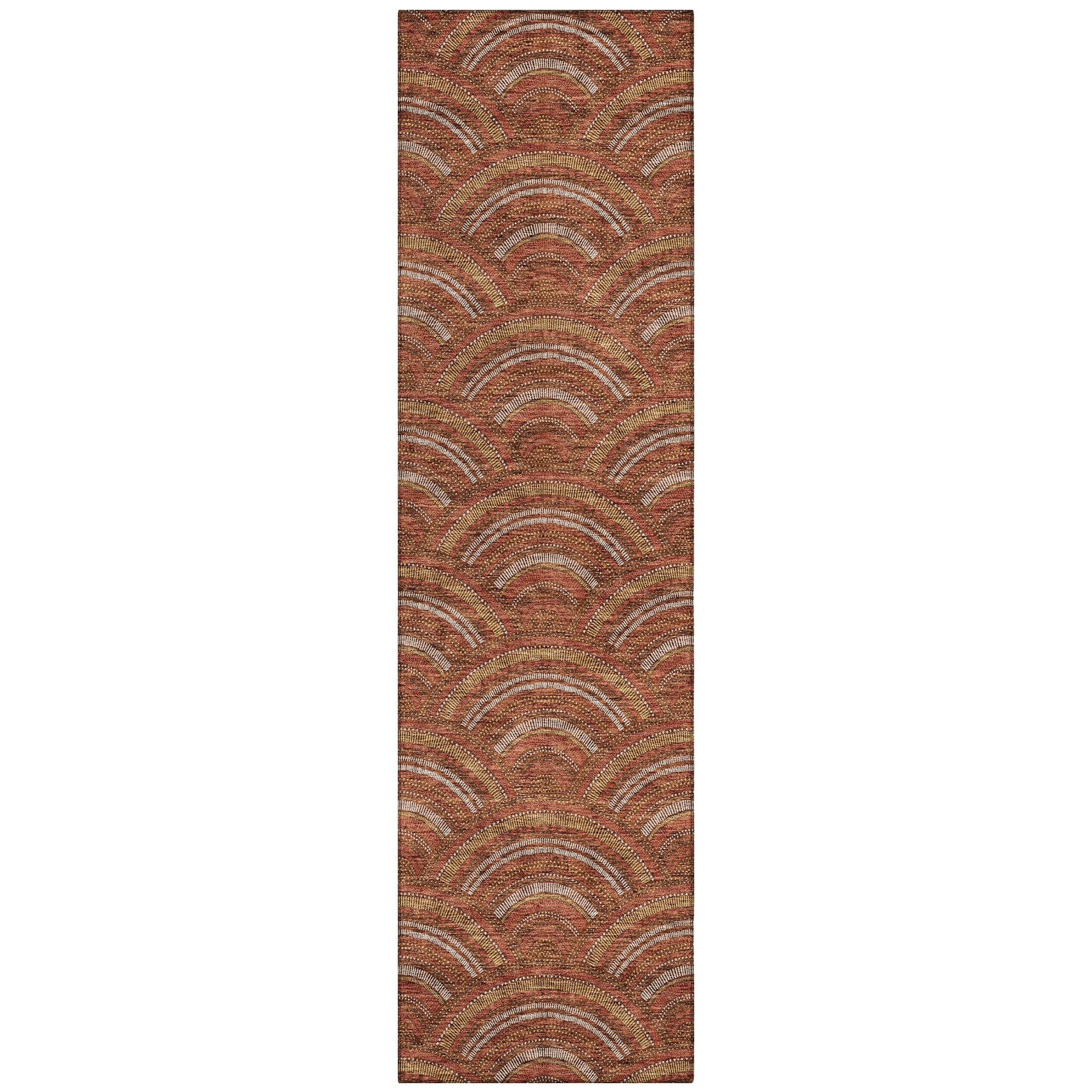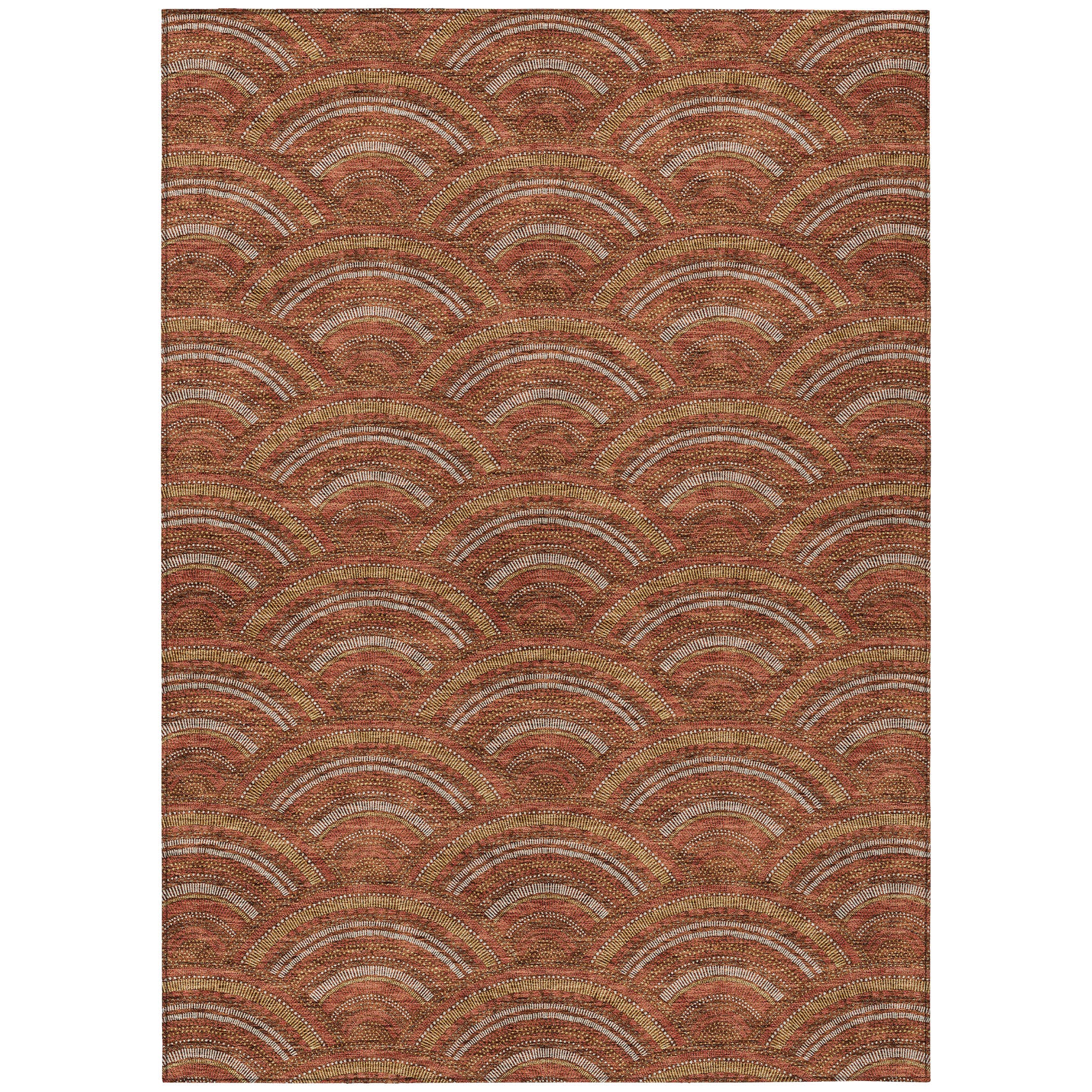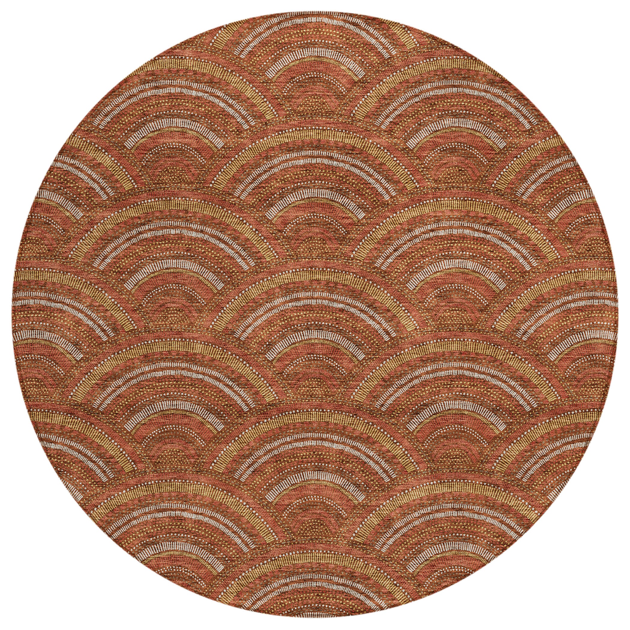 Chantille ACN984 Paprika area rug, a perfect blend of modern trends and transitional style. Its smart semi-circle pattern adds a touch of contemporary flair to any room. Designed with UV stabilization, this rug is ideal for both indoor and outdoor spaces, offering durability against sun exposure. The ultra-thin construction ensures a subtle and chic presence in your decor.