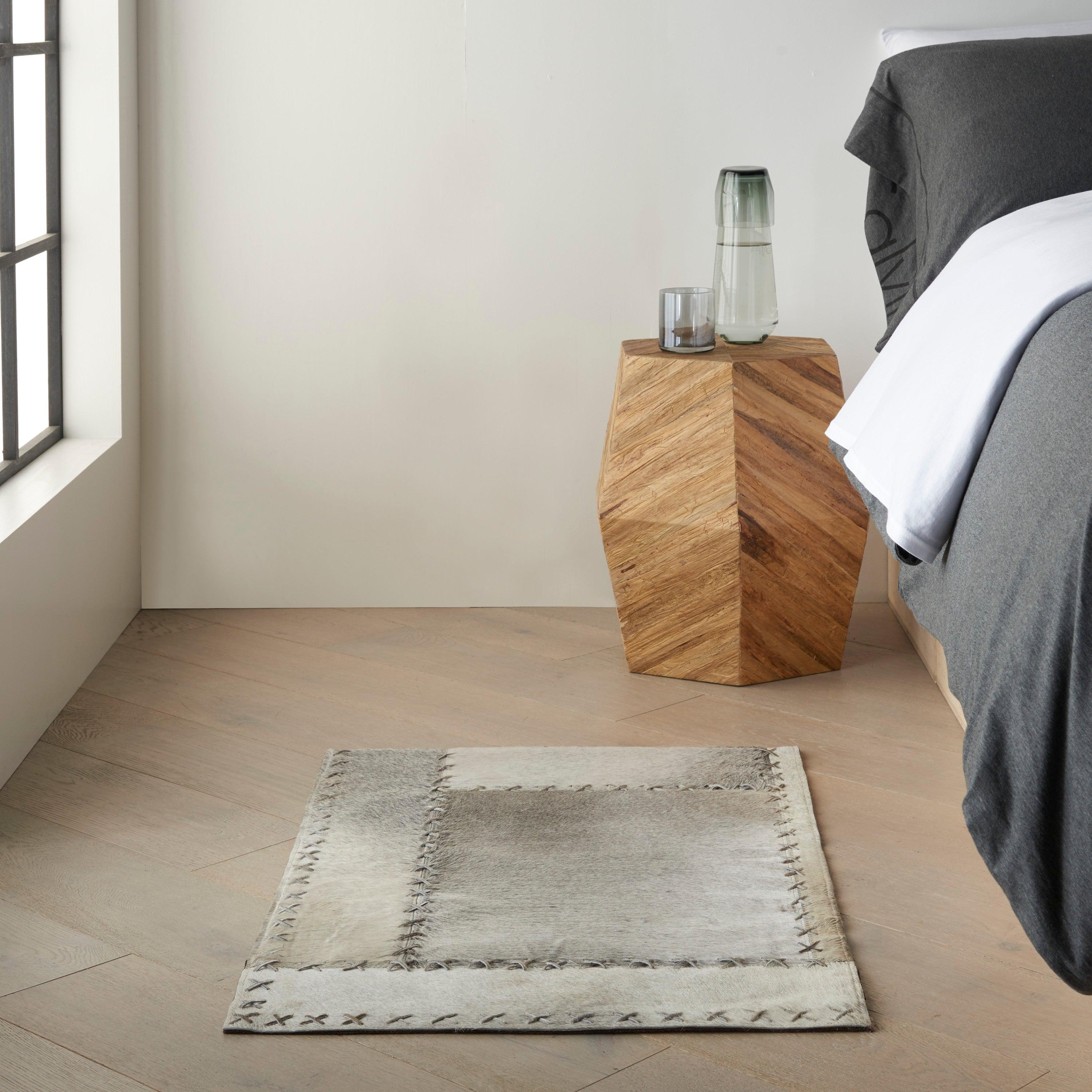 CK960 Northwest CK960 Grey area rug from the Northwest Collection, drawing inspiration from the rugged beauty of America's northwest. Crafted with 100% leather and hair-on-hide, these rugs feature intricate patchwork patterns and cross-stitch details. Elevate your space with a touch of rustic charm and luxurious comfort, courtesy of CALVIN KLEIN's modern minimalism ethos.