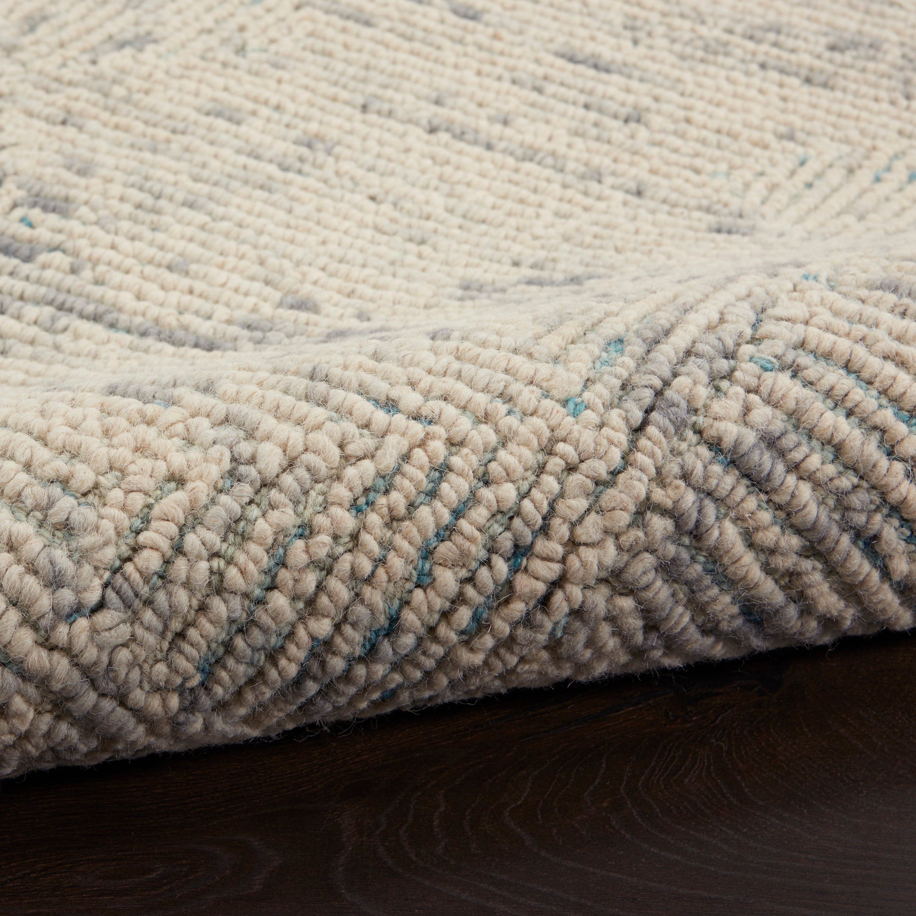 Elevate your living space with the Colorado CLR04 Ivory Grey Teal rug from our nature-inspired collection. Hand-tufted with loop pile, each rug boasts exquisite texture and a contemporary charm. The borderless design and serged edges offer a clean, modern aesthetic that complements any decor style. With a palette of earth-tones and bold linear patterns, these rugs exude rustic allure while effortlessly blending in urban lofts or modern farmhouses.