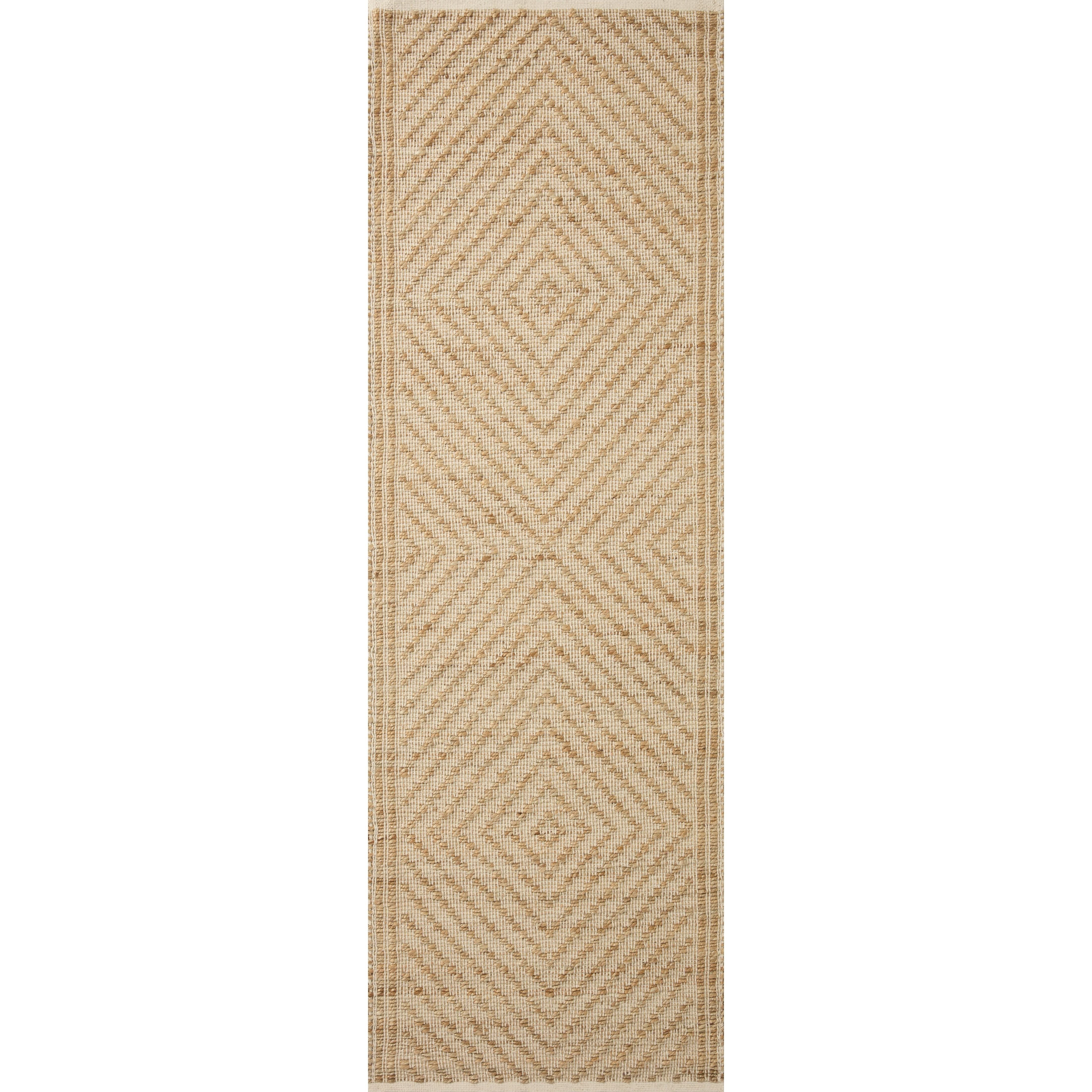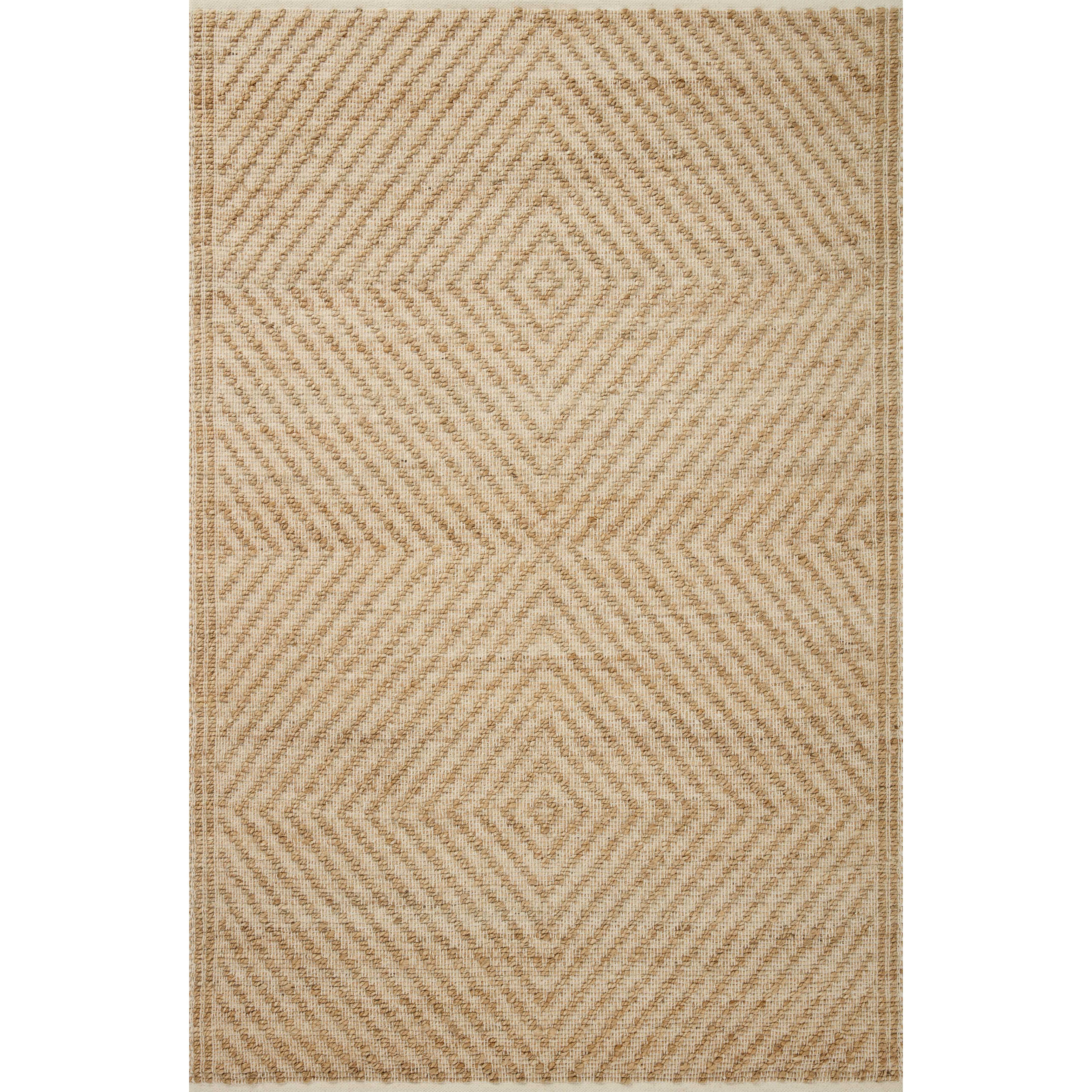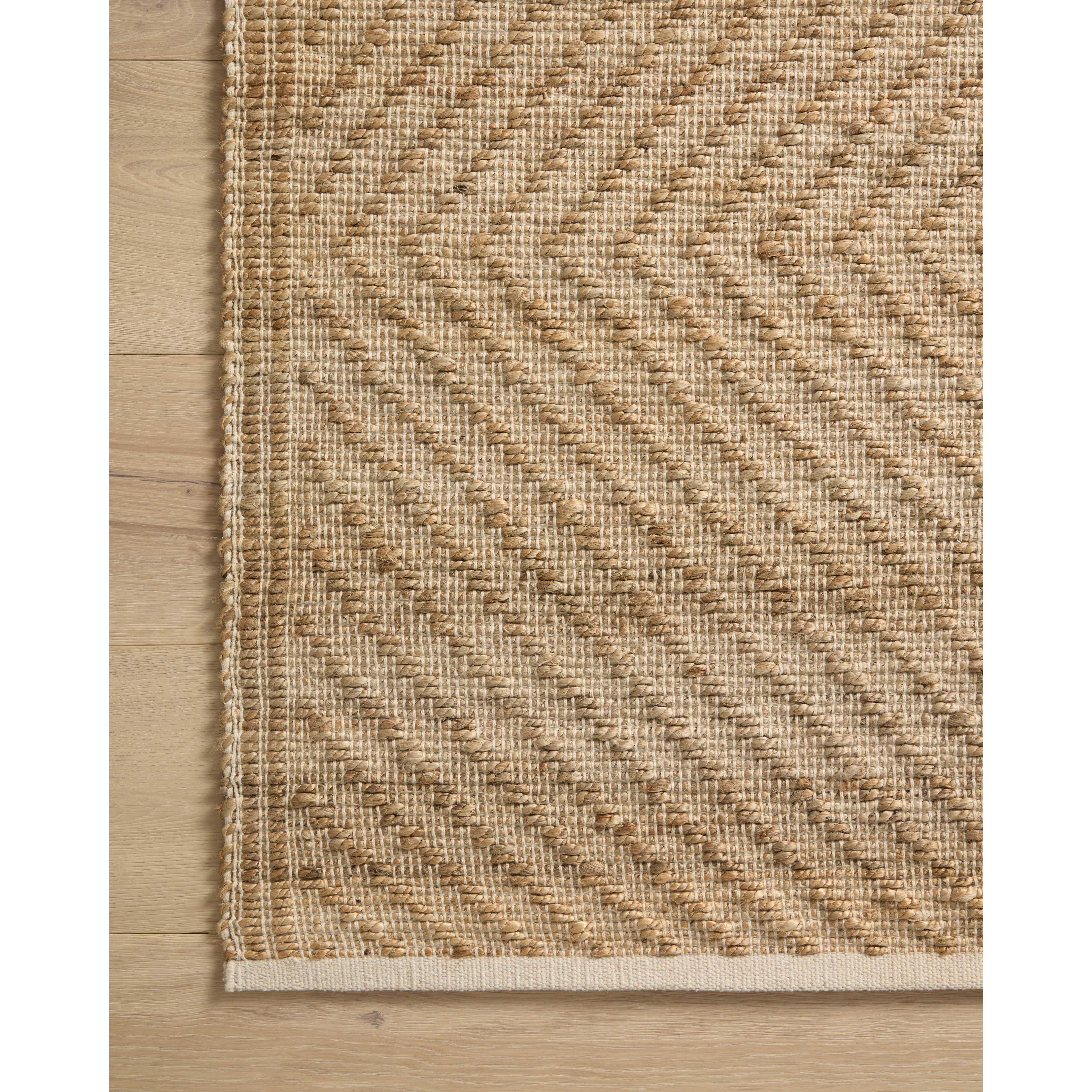 Colton Con 04 Natural Ivory rug from the Colton Collection by Angela Rose x Loloi. This unique rug combines jute with cotton to create a softer texture while maintaining its natural appeal. The collection features modern linear designs in earth tones, perfect for adding a touch of visual interest or serving as a neutral backdrop in any room.