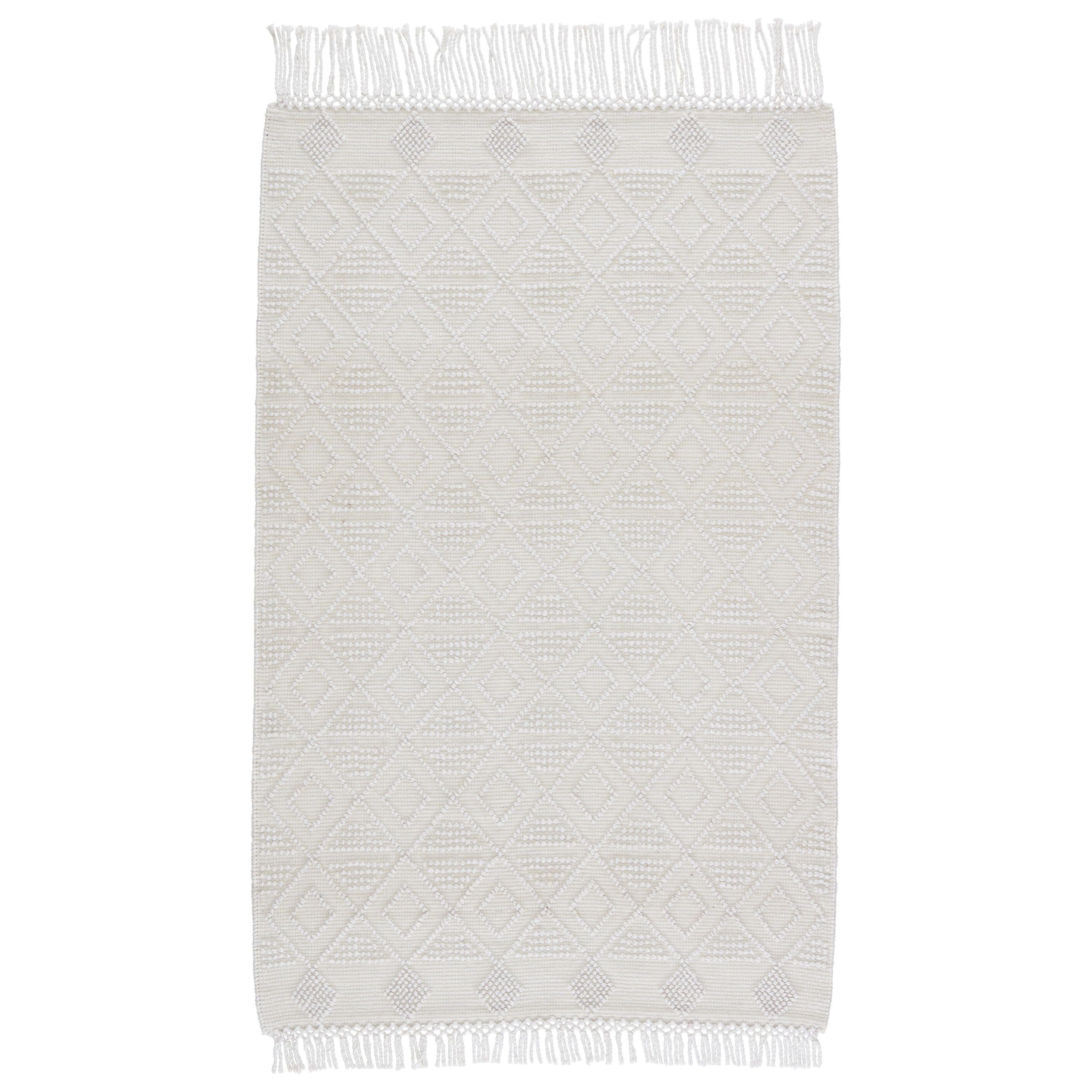 Cosette COE03 Esma rug from our handwoven collection, a perfect blend of texture and casual charm. The Esma rug stands out with its boucle-style geometric pattern in a refreshing white and ivory color palette. Crafted using PET yarn, made from recycled plastic materials, this trendy rug is not only chic but also long-lasting. Whether placed indoors or outdoors, it adds a touch of warmth and global flair to any space.