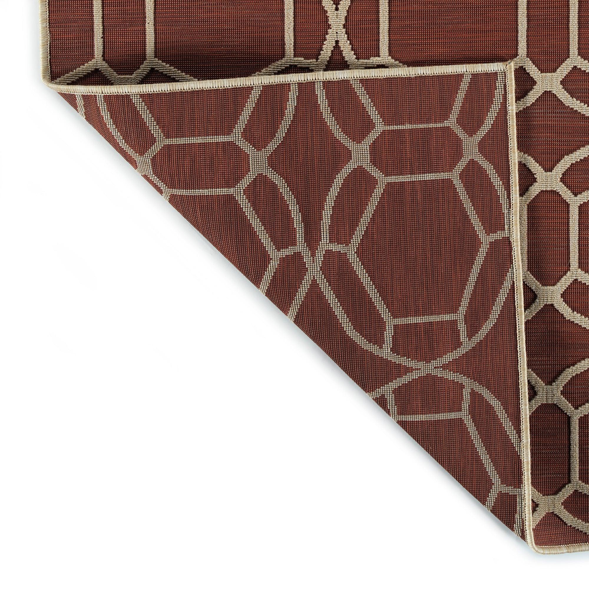 Cove COV05 25 Red rug from our stunning Cove collection. Inspired by the beauty of Tahiti's blue lagoons and sandy beaches, this rug features simple yet captivating geometric designs in a variety of vibrant nature-inspired colors. Crafted in Turkey using 100% Polypropylene, the Cove collection is designed to enhance any outdoor space with its durability and style.