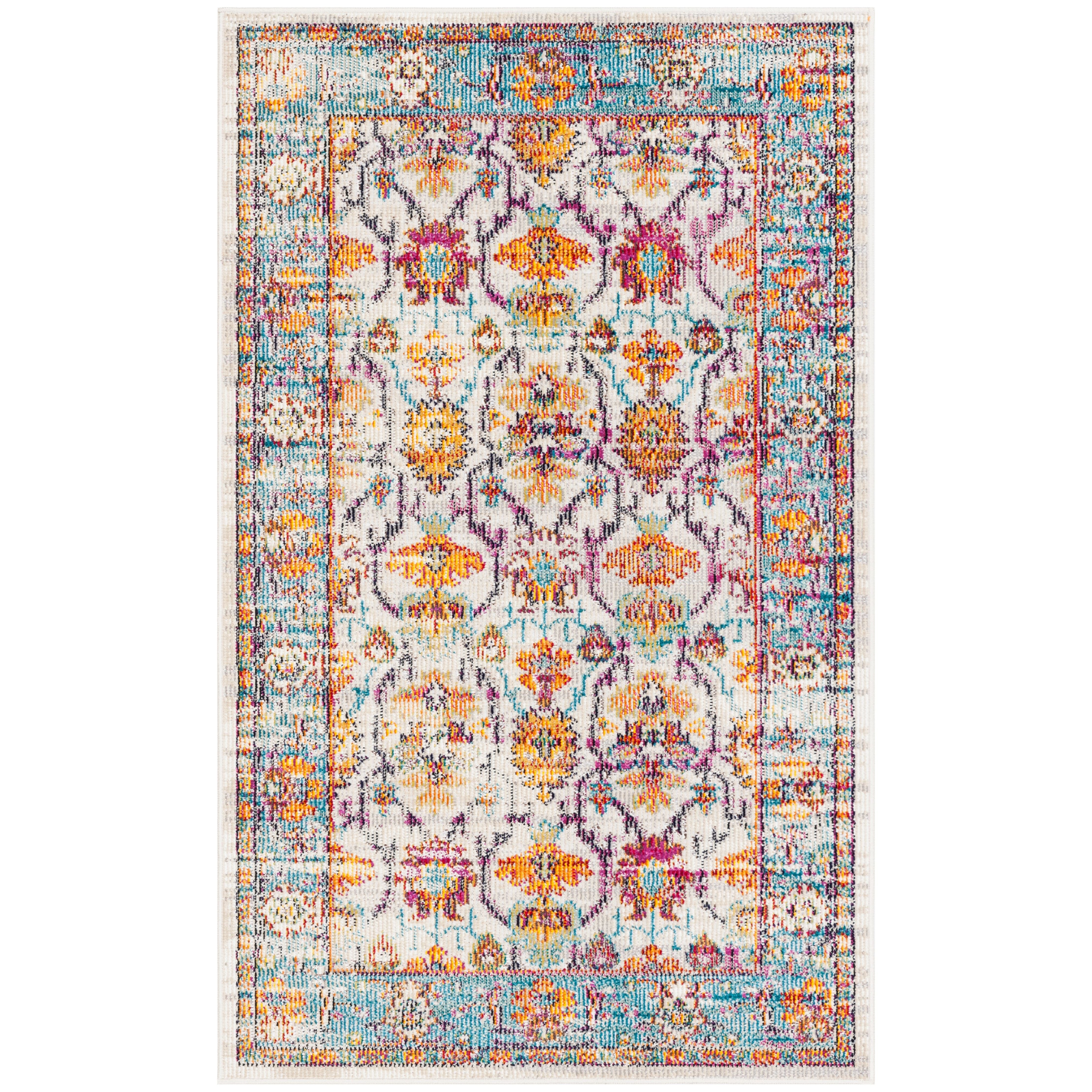 Elevate your living space with the Crystal CRS518G Cream Teal rug from SAFAVIEH's Crystal Collection. This collection offers a blend of traditional Oriental patterns and contemporary abstract designs, perfect for adding a touch of bohemian flair to your home decor. Crafted from durable polypropylene fibers, these rugs are both stylish and practical for high-traffic areas. With an approximate thickness of 0.25 inches, this rug is the perfect combination of comfort and functionality.