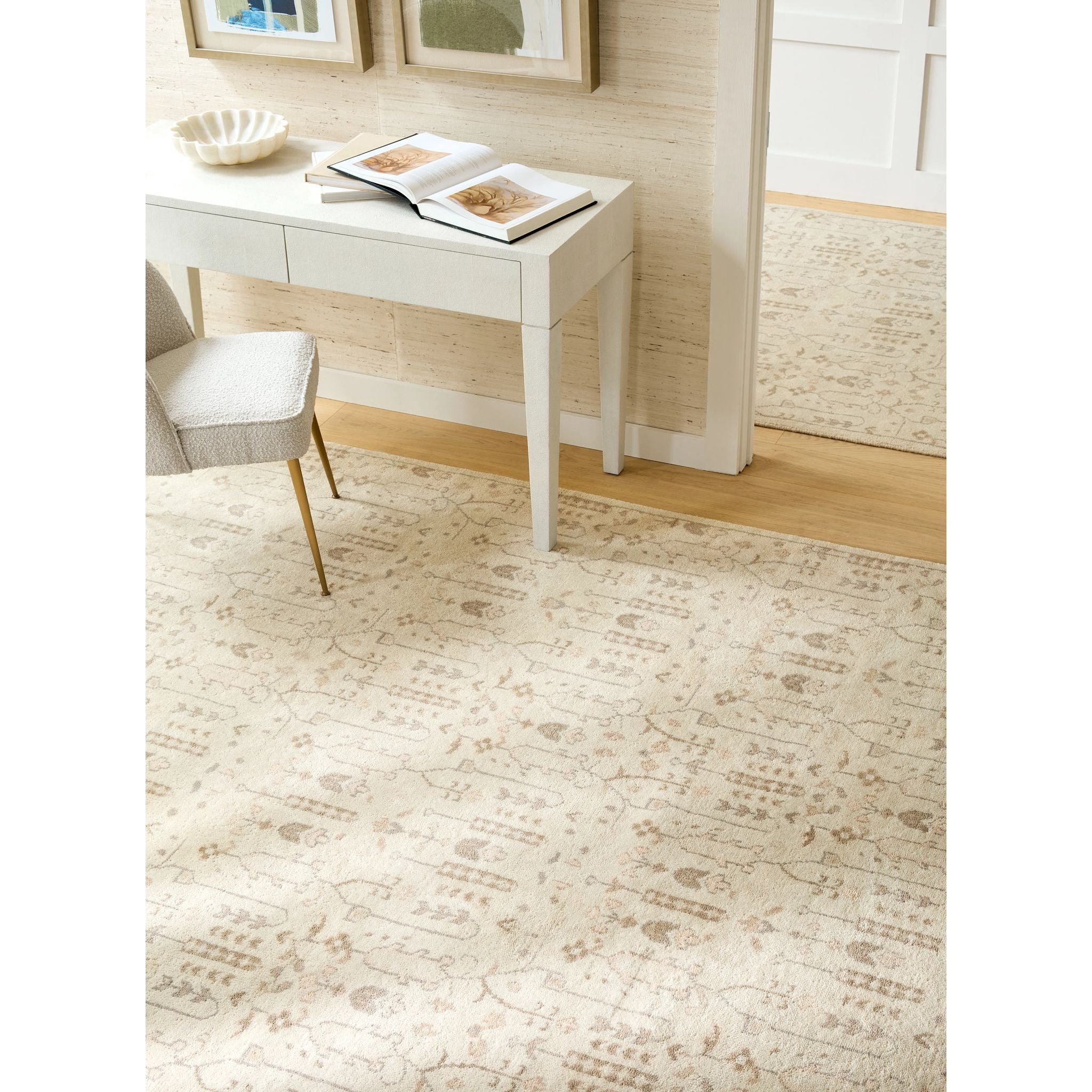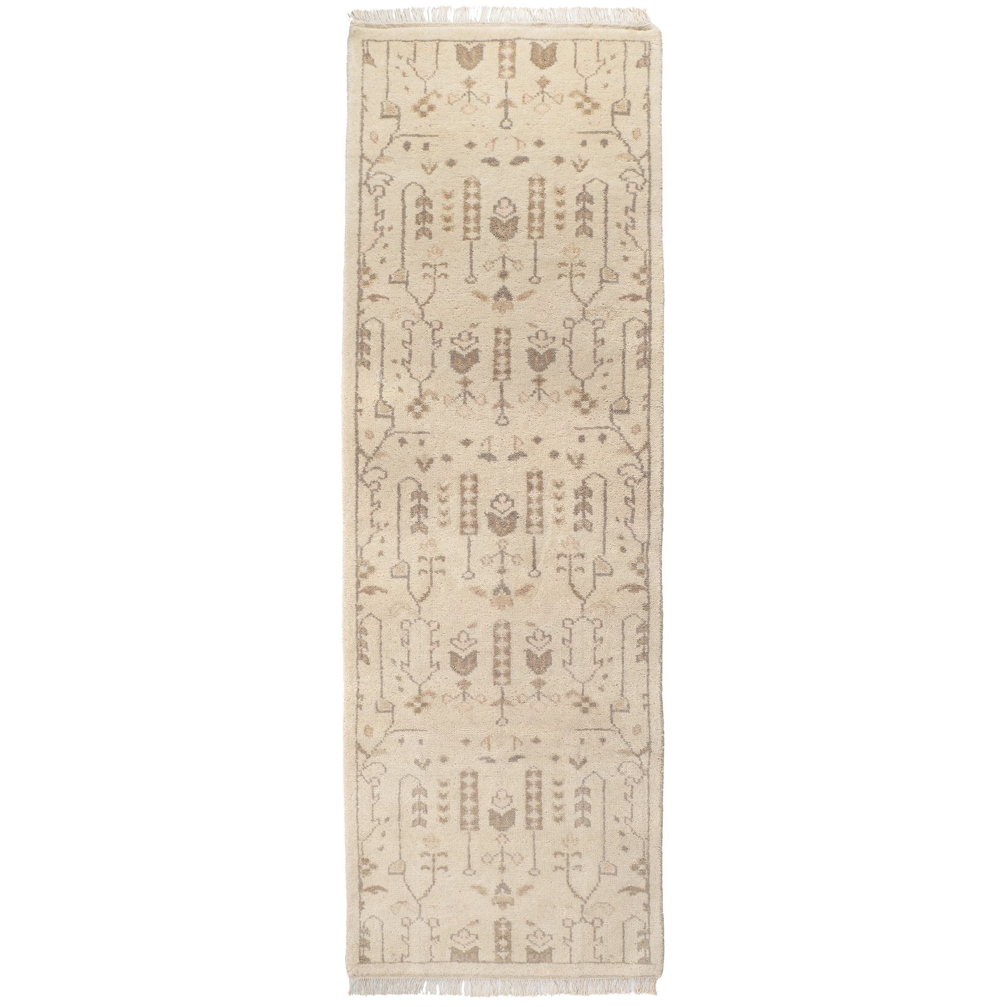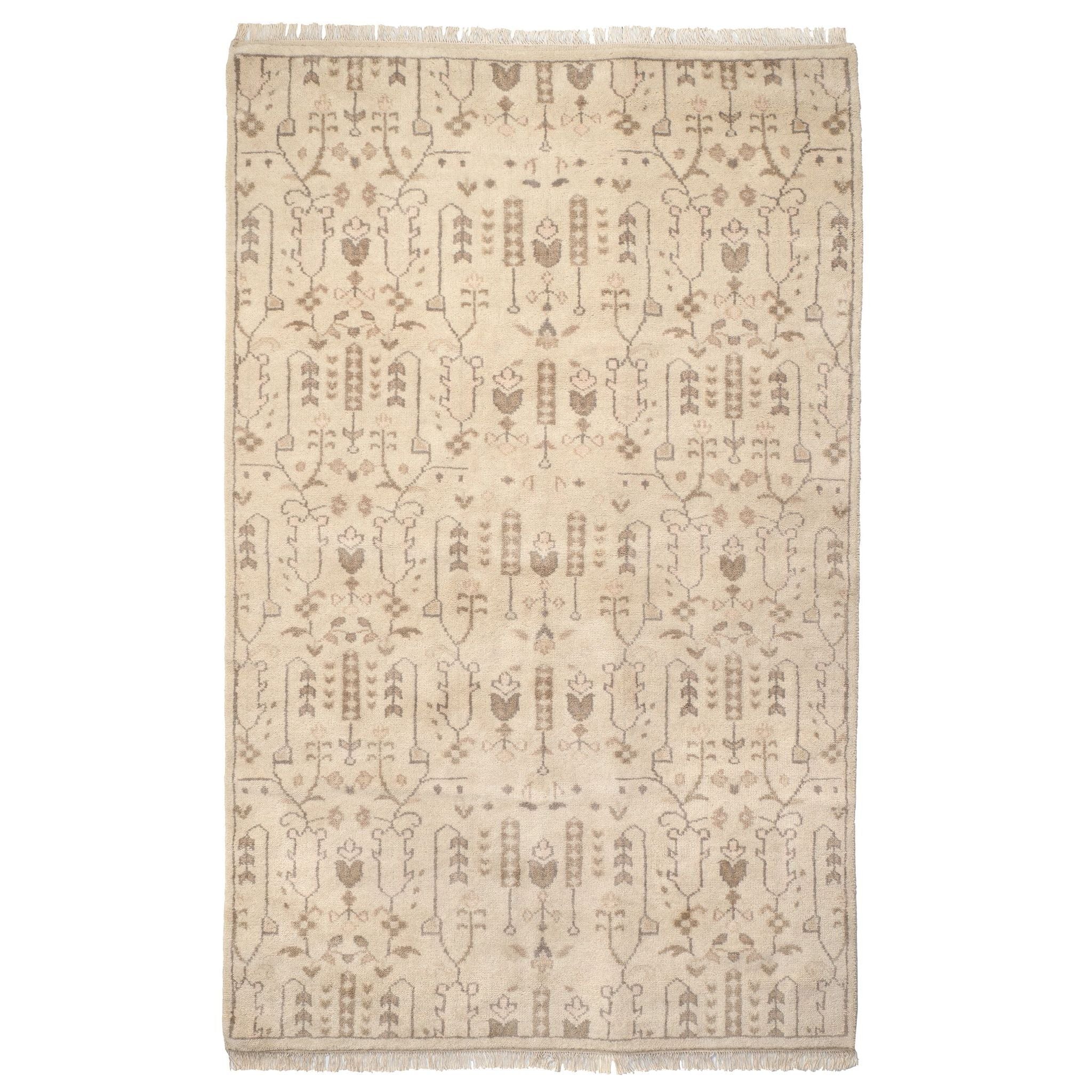 Meet the Dara Cream Hand Knotted Wool Rug—a true standout in our new vintage-inspired collection. This masterpiece is a modern take on a timeless style, with highly intricate geometric designs in sophisticated tones that effortlessly blend into any decor. Its lush, soft texture offers a luxurious feel underfoot, while the unmatched craftsmanship ensures it's built to last.