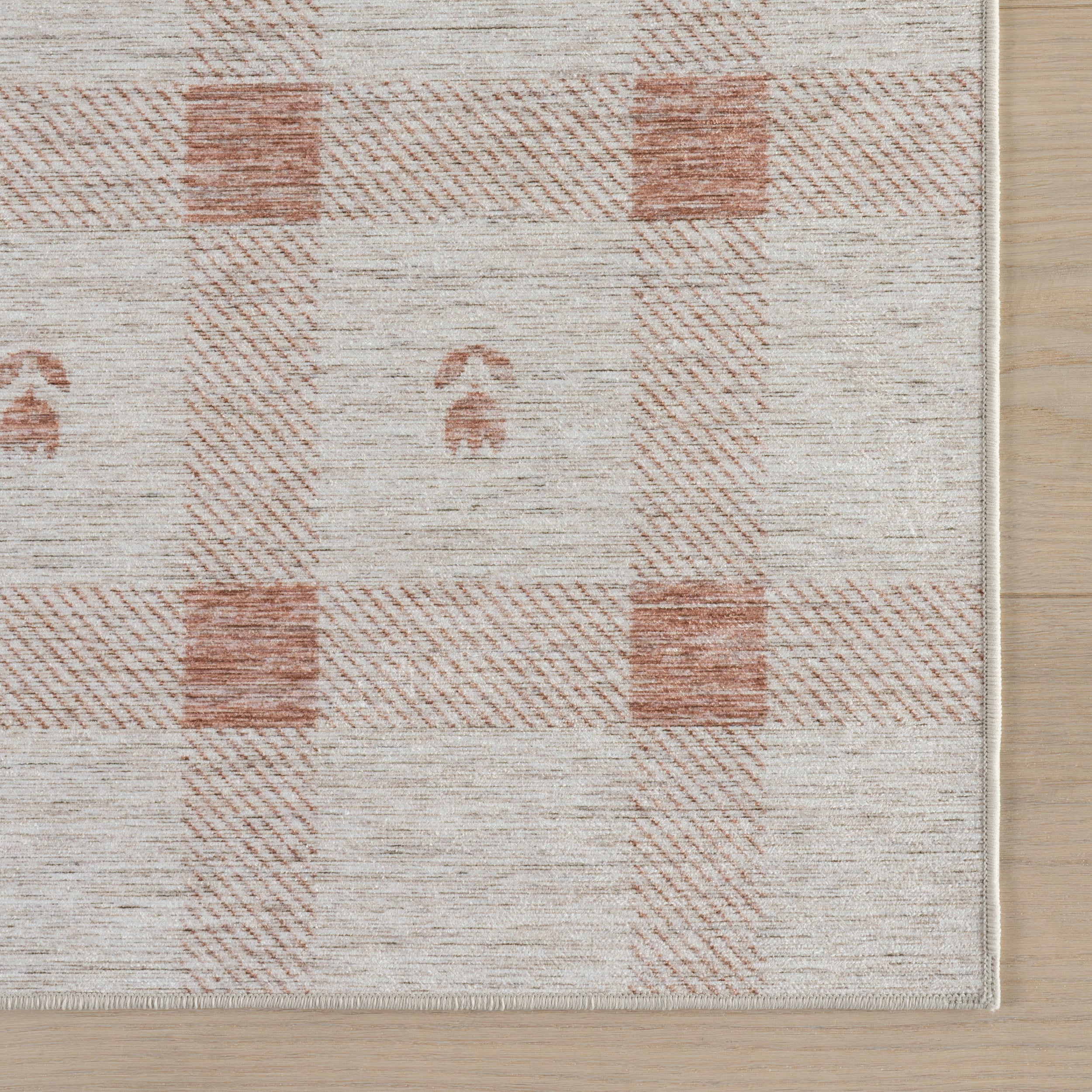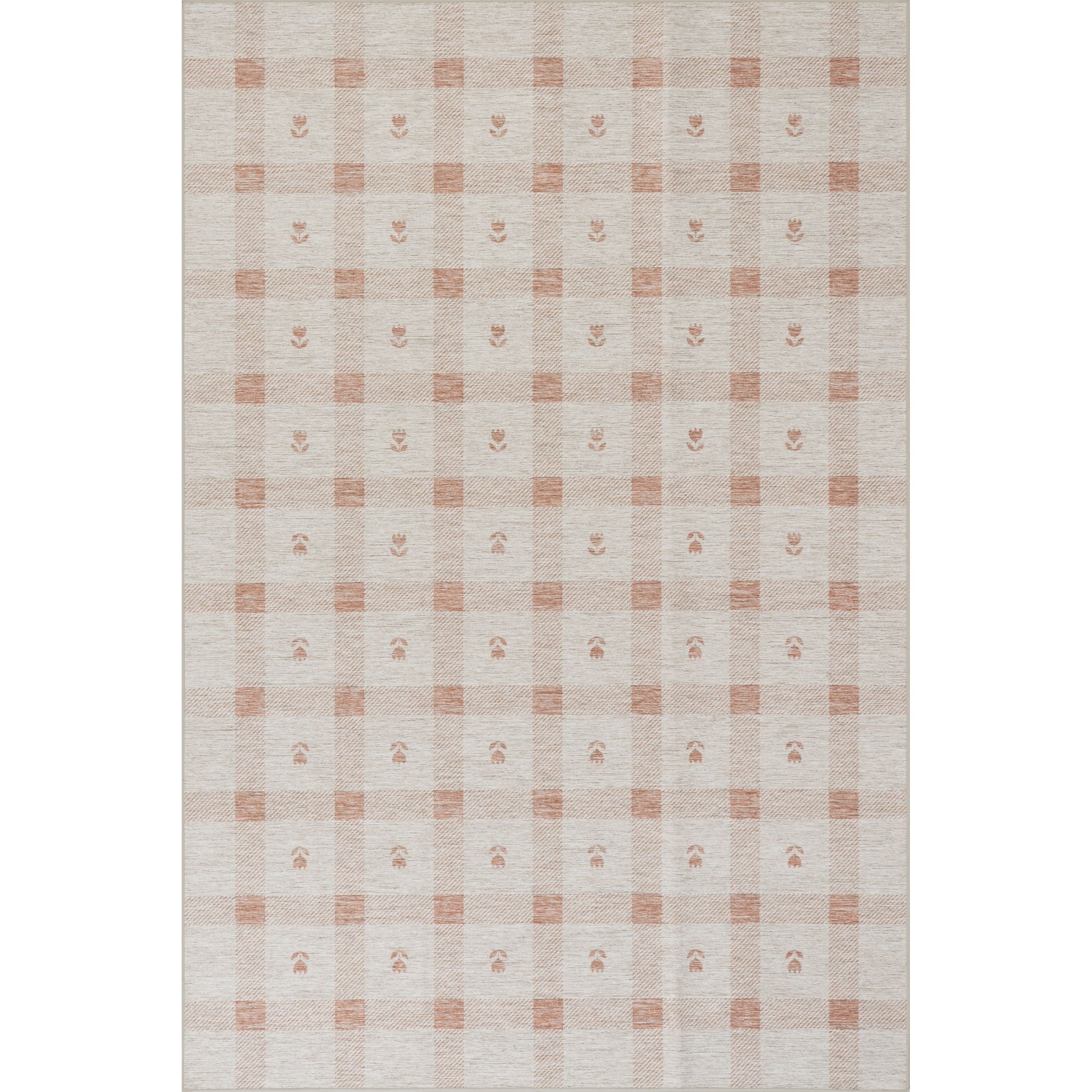 A modern plaid design is brought to life on this synthetic rug. Its washable, easy-to-clean construction makes it a practical and stylish choice for any room.