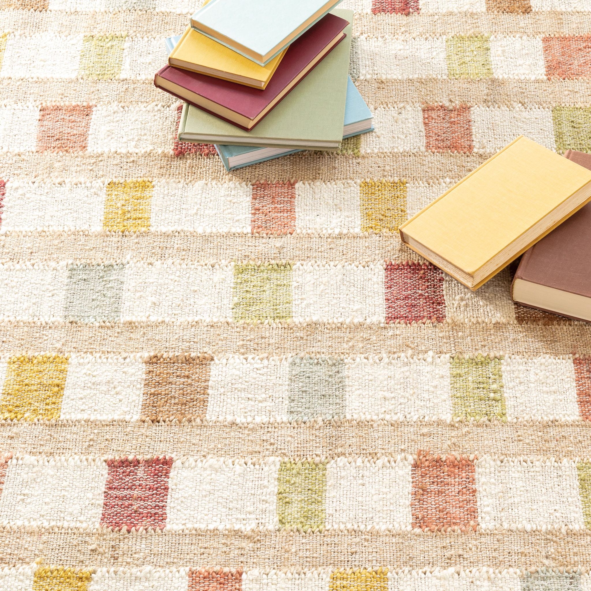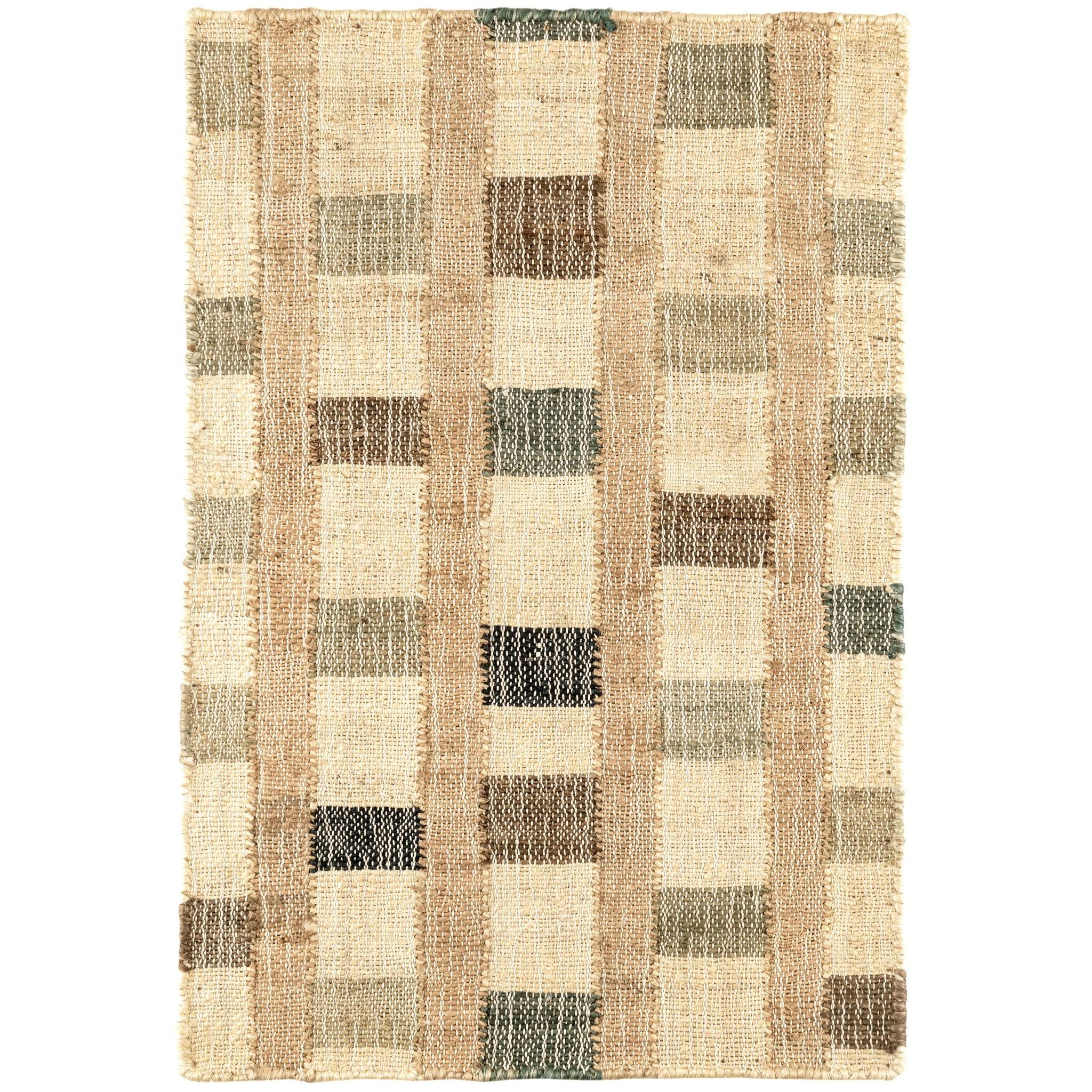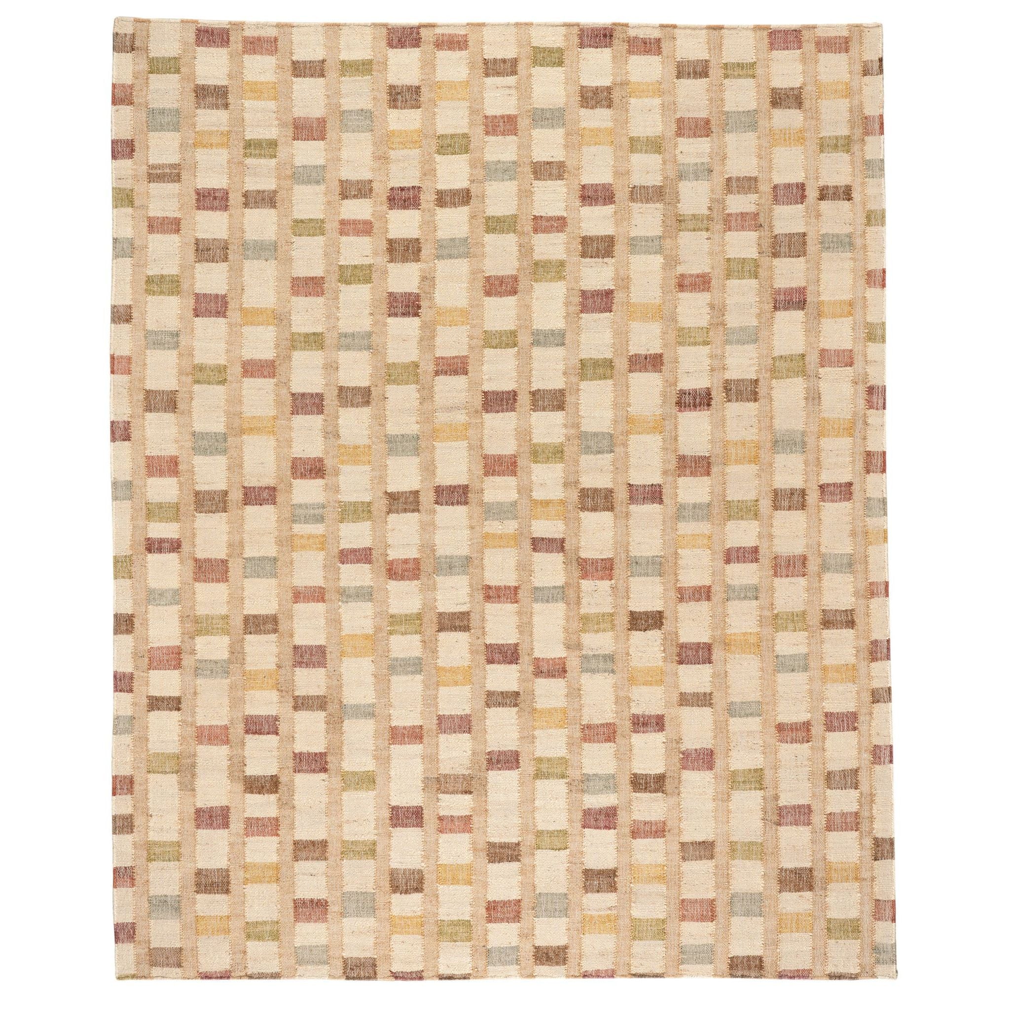 Our finely textured, low-profile jute rug is expertly Kilim handwoven in a modern, multi-check grid of Natural, , , , and blocks on . Hardworking jute fiber is sophisticated, practical, eco-friendly, ultra-durable, and great for any indoor high-traffic areas.