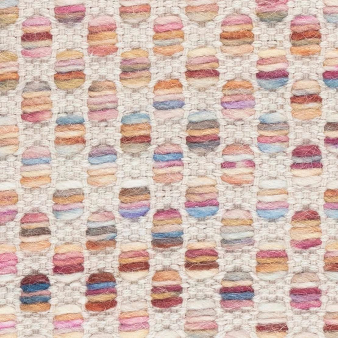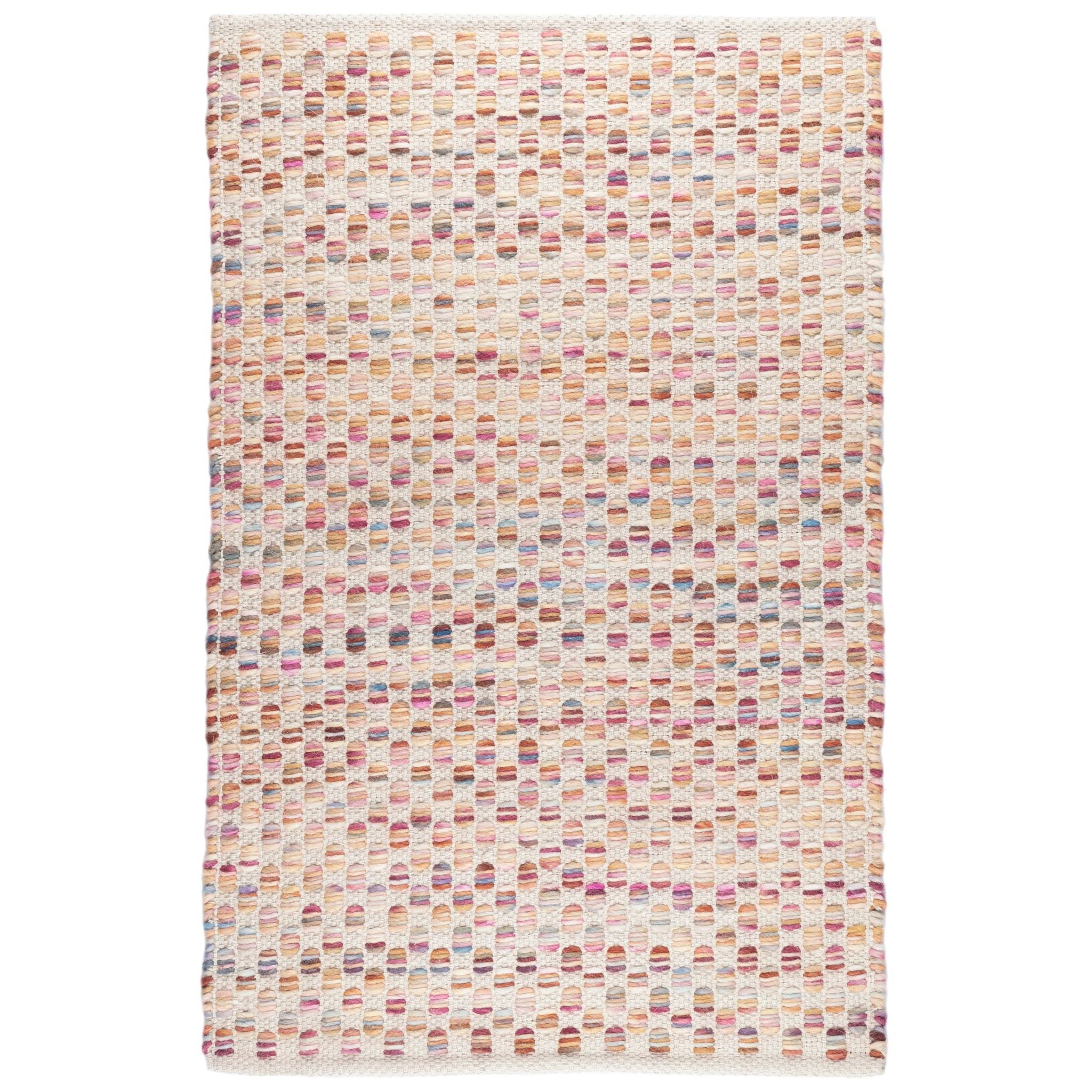 Functional design meets simple beauty and masses of texture in this tightly woven, low profile wool rug. Silky heathered wool roving in pretty floral colorations on a cream base creates a pavement-mosaic of colorful lozenges that is soft, durable and timeless. A simple way to add a gentle dose of feminine charm to your home.