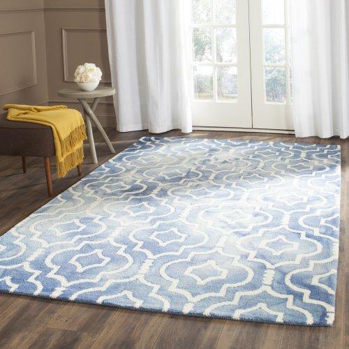 captivating Dip Dye DDY538K rug from Safavieh - a stunning fusion of color and texture that sets it apart as a unique piece of art for your floor. Hand-tufted with wool and double-dyed, each rug showcases intricate patterns with vibrant color transitions against a solid backdrop. The modern design of these cut pile rugs adds a fresh touch to any space, expertly crafted by artisans to create mesmerizing ombré effects in a harmonious blend of tones.