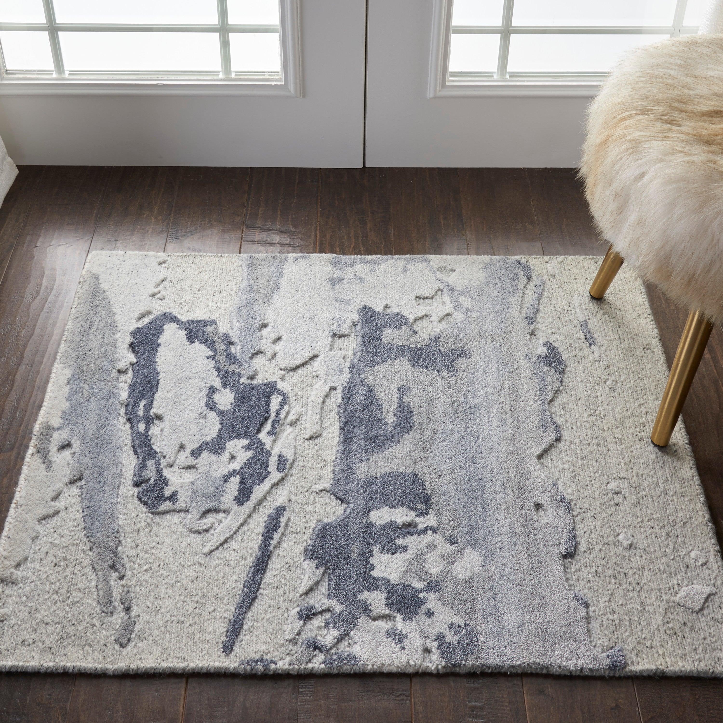 Divine DIV04 Slate from the Divine Collection by Nourison, a masterpiece in rug design. Each piece is a stunning work of art, featuring abstract patterns inspired by natural landscapes. The subdued neutral colors effortlessly blend with any refined decor, adding a touch of elegance to your living space.