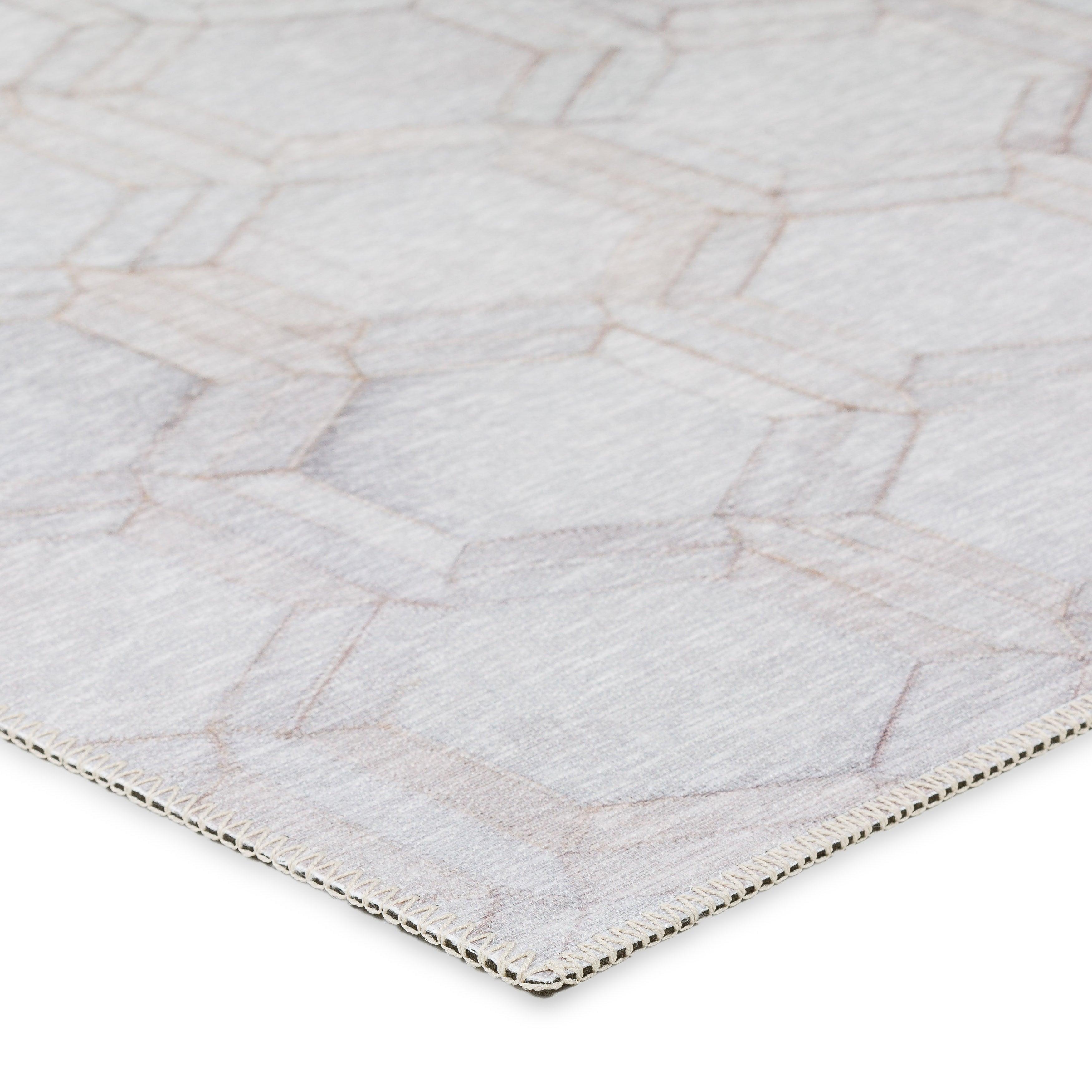 Durango SS1 Linen rug collection, a stunning faux hide patchwork design that will impress your guests with its realistic details. This stylish rug boasts neutral colors and intricate mosaic shapes, creating a captivating gradient movement pattern. Crafted with an ultra-soft and thin 100% polyester pile, each rug features a non-skid backing for added safety.