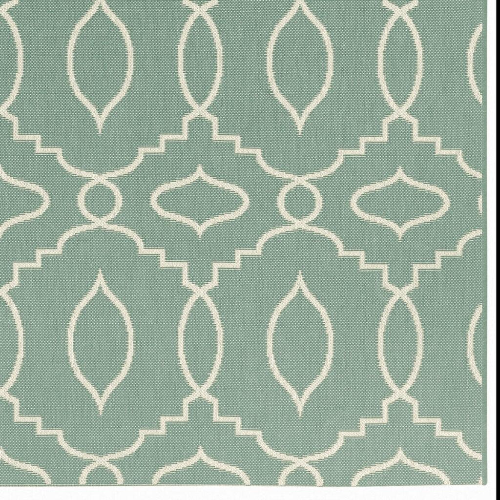 exquisite Elsinore Moor Blue rug, crafted from 100% Olefin to seamlessly transition between indoor and outdoor spaces. Renowned designer Genevieve Gorder has beautifully described this rug as a modern take on a classic dhurrie pattern, perfect for adding a touch of elegance to your kitchen or deck. The light neutral base combined with clean, graphic patterns create a stunning visual impact that will enhance any natural landscape. Not only is the Elsinore Moor Blue rug visually captivating, but it is also UV protected to ensure long-lasting durability against the elements. Elevate your living space with this versatile and stylish rug today!
