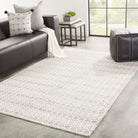Enclave ENC01 Calliope - a stunning addition to any modern space. Crafted from 100% wool, this rug from the Enclave collection is all about intricate details and effortless style. The Calliope dhurrie rug features a charming geometric lattice design, showcasing honeycomb and diamond shapes in neutral ivory and gray tones.