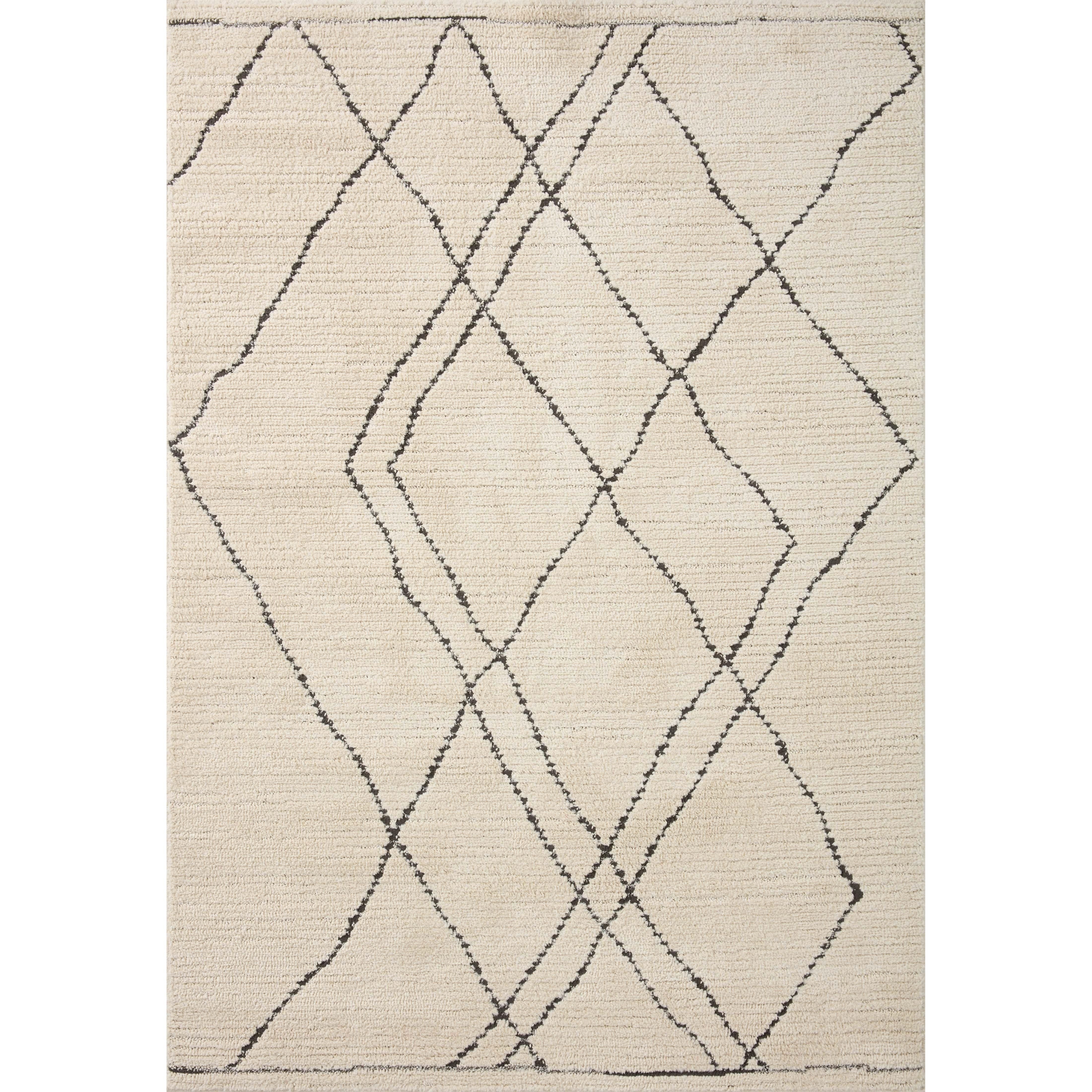 Fabian Fab 02 Ivory Charcoal rug from the exquisite Fabian Collection. This rug beautifully reimagines classic diamond-shaped Moroccan patterns in a sophisticated greige and soft black color palette. Crafted with precision, it boasts a unique high-low texture that adds depth to any space while ensuring a plush feel under your feet.