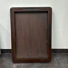 - Hangs horizontally or vertically on a 18" metal wall cleat that is provided Recycled Wood, MDF Dark Brown Dust with dry cloth. Clean mirror with glass cleaner.