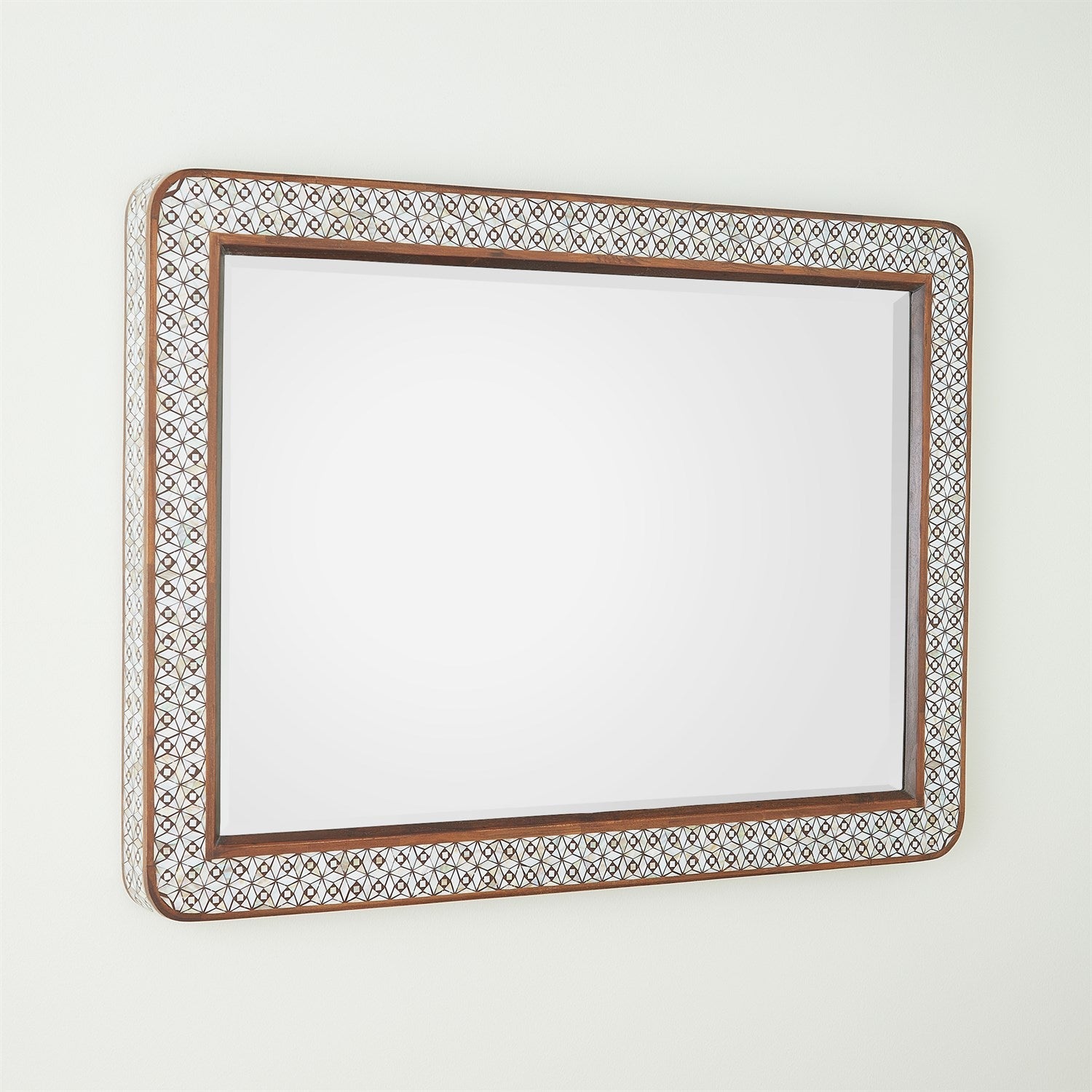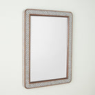 The Aravalli Console and Mirror showcase exquisite mother-of-pearl inlays arranged in a captivating array of patterns on a recycled teakwood frame. Display them together for a stunning focal point, or let each piece shine as a distinctive statement.