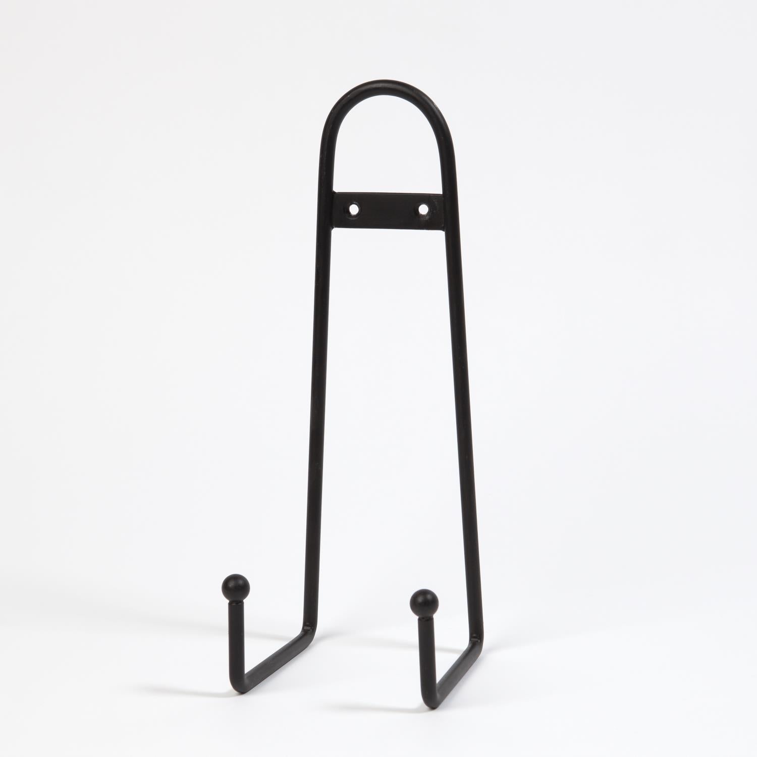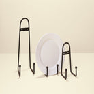 Hand-formed iron plate stand with decorative ball design perfect for displaying a charger or plate.