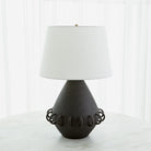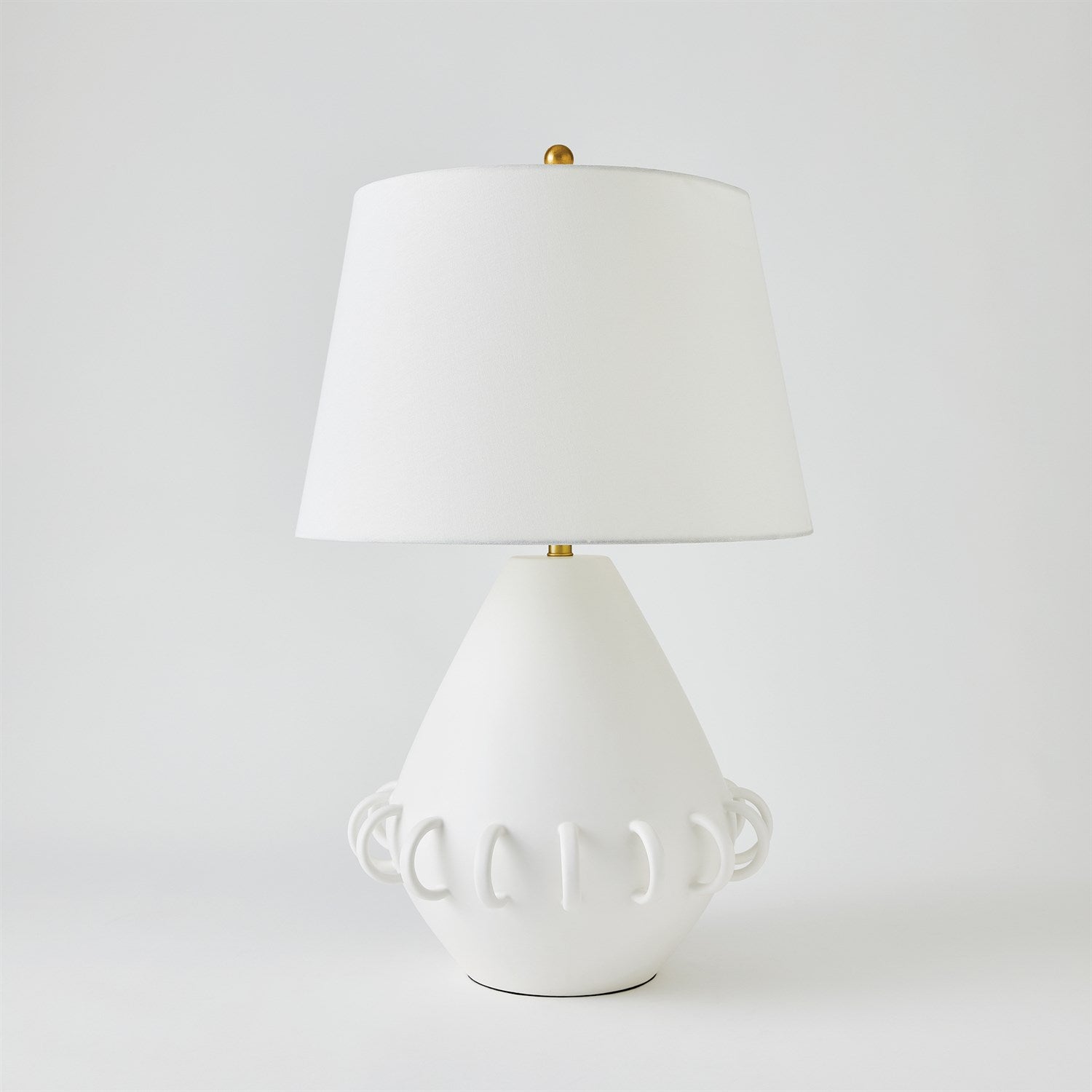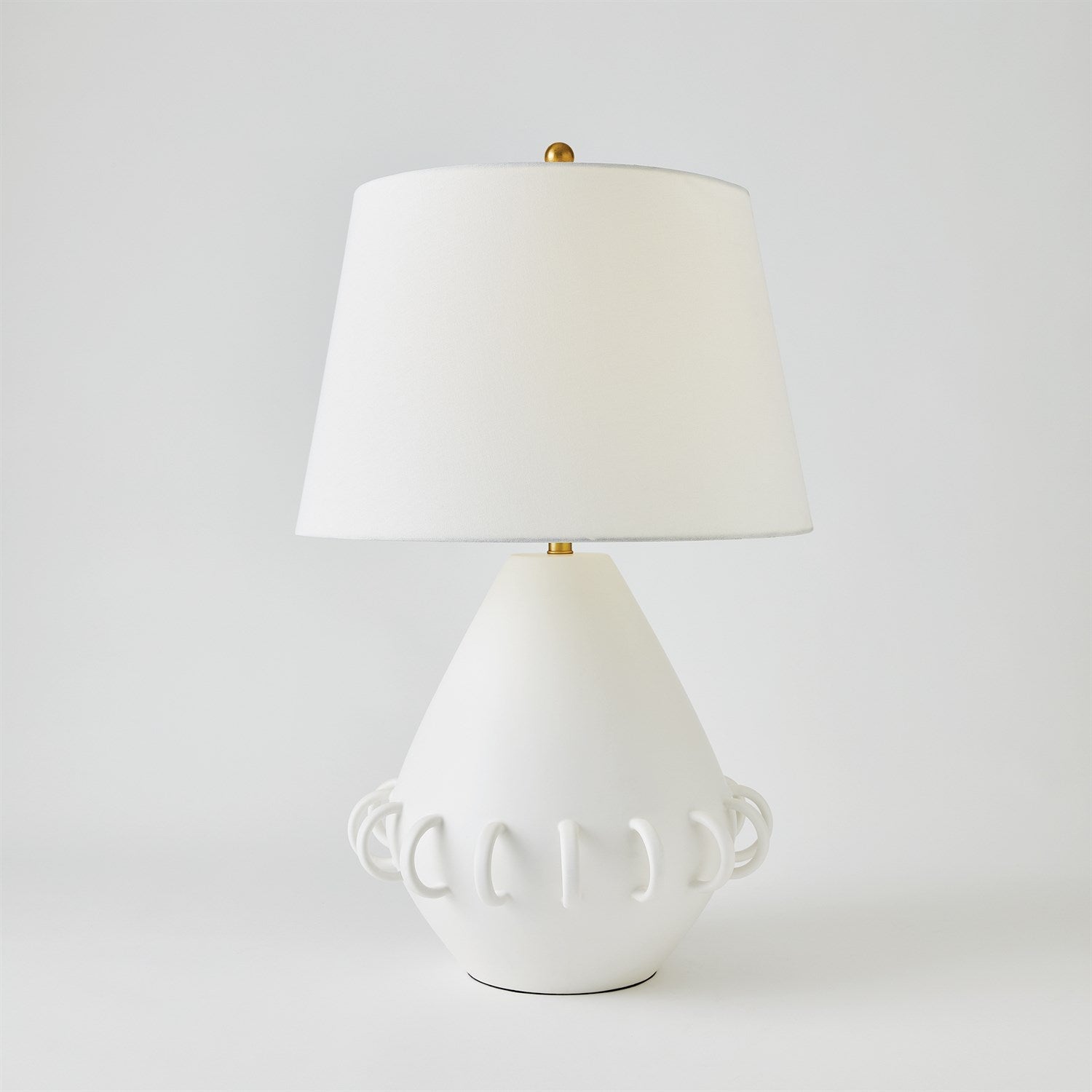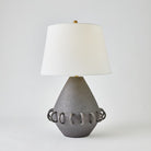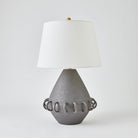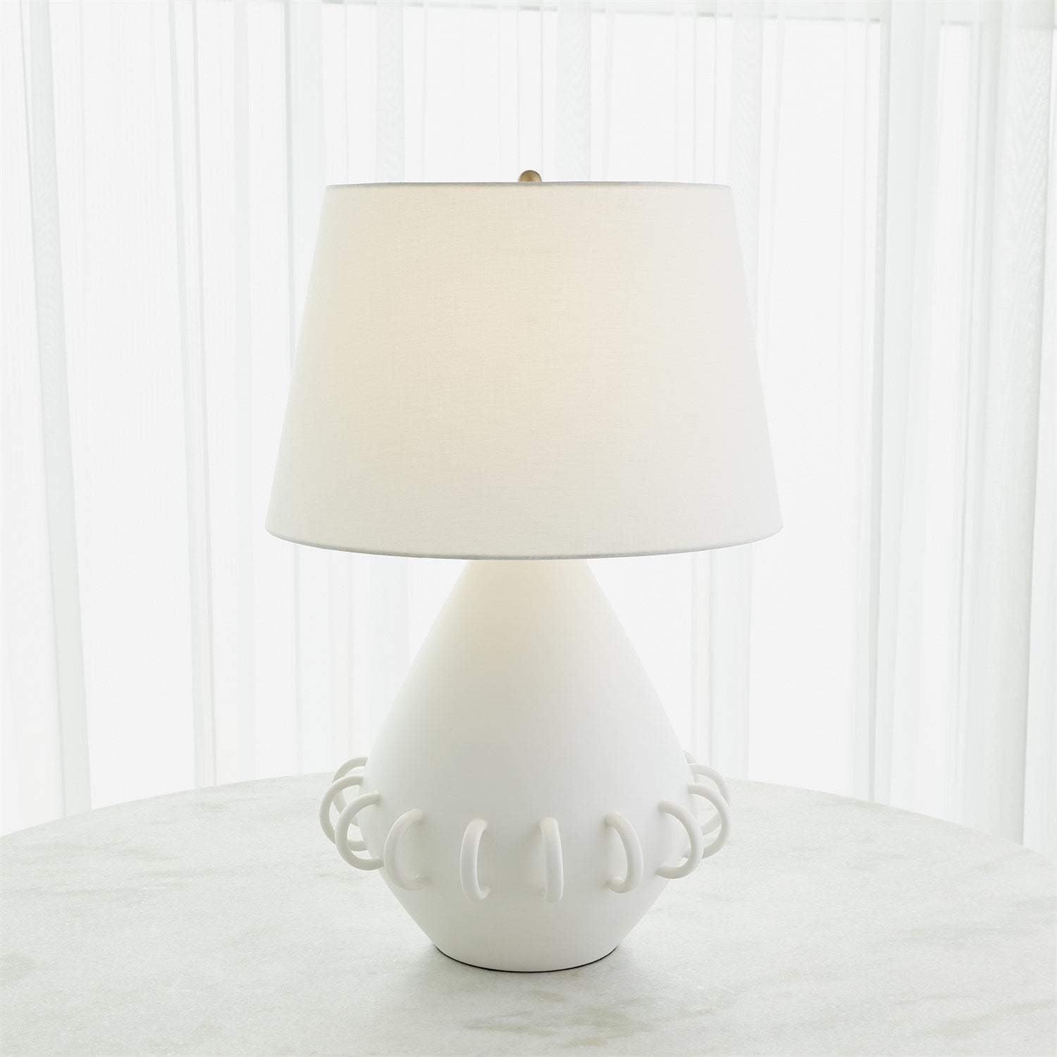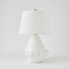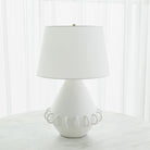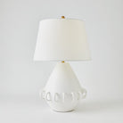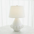 Ceramic rings encircle the rounded tapper body of our Bangle Lamp. Each lamp is handmade in Portugal by master ceramic artisans and has a soft matte white or Black glaze and textural ivory linen shade.