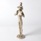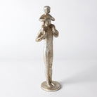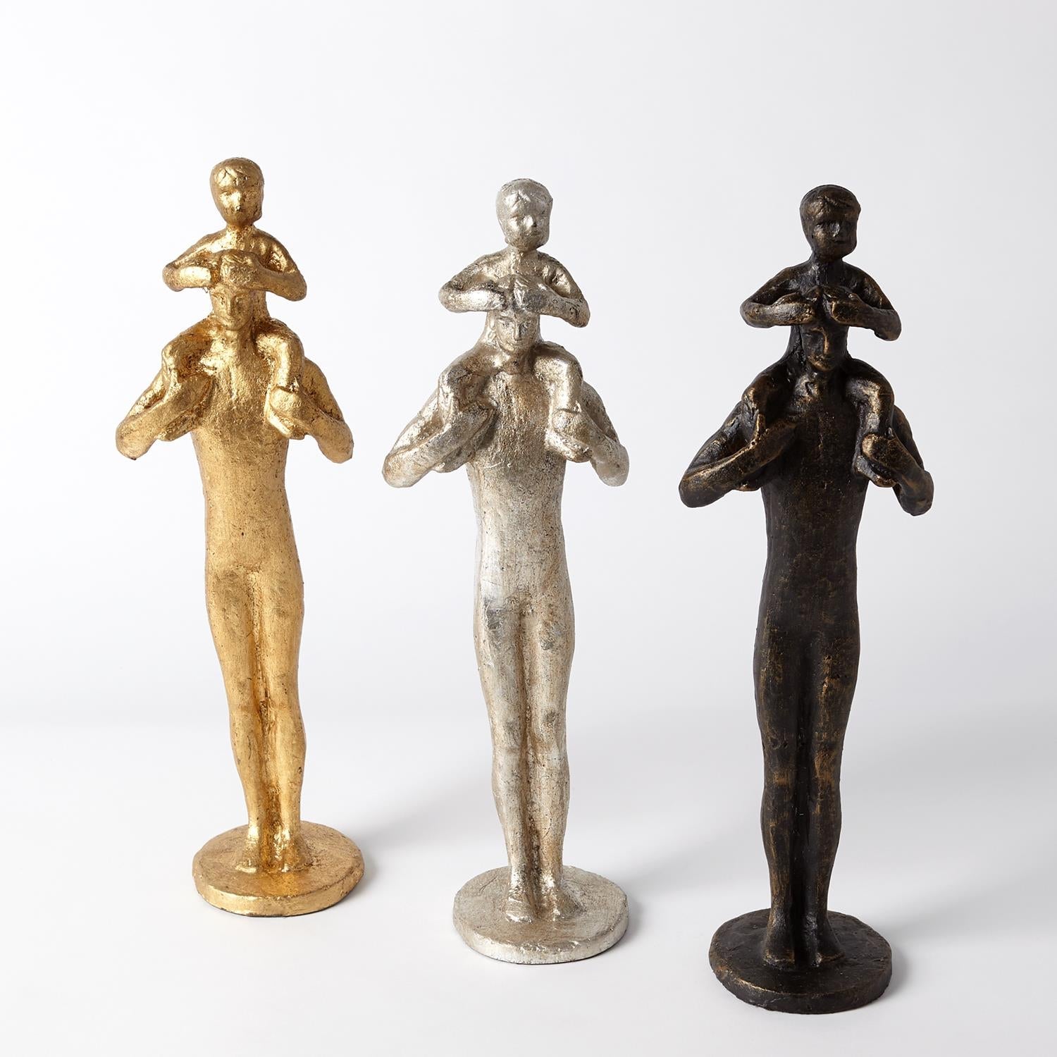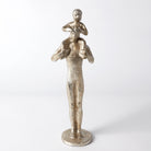 A touching moment between a father and son is captured in this iron sculpture, finished in silver leafing.