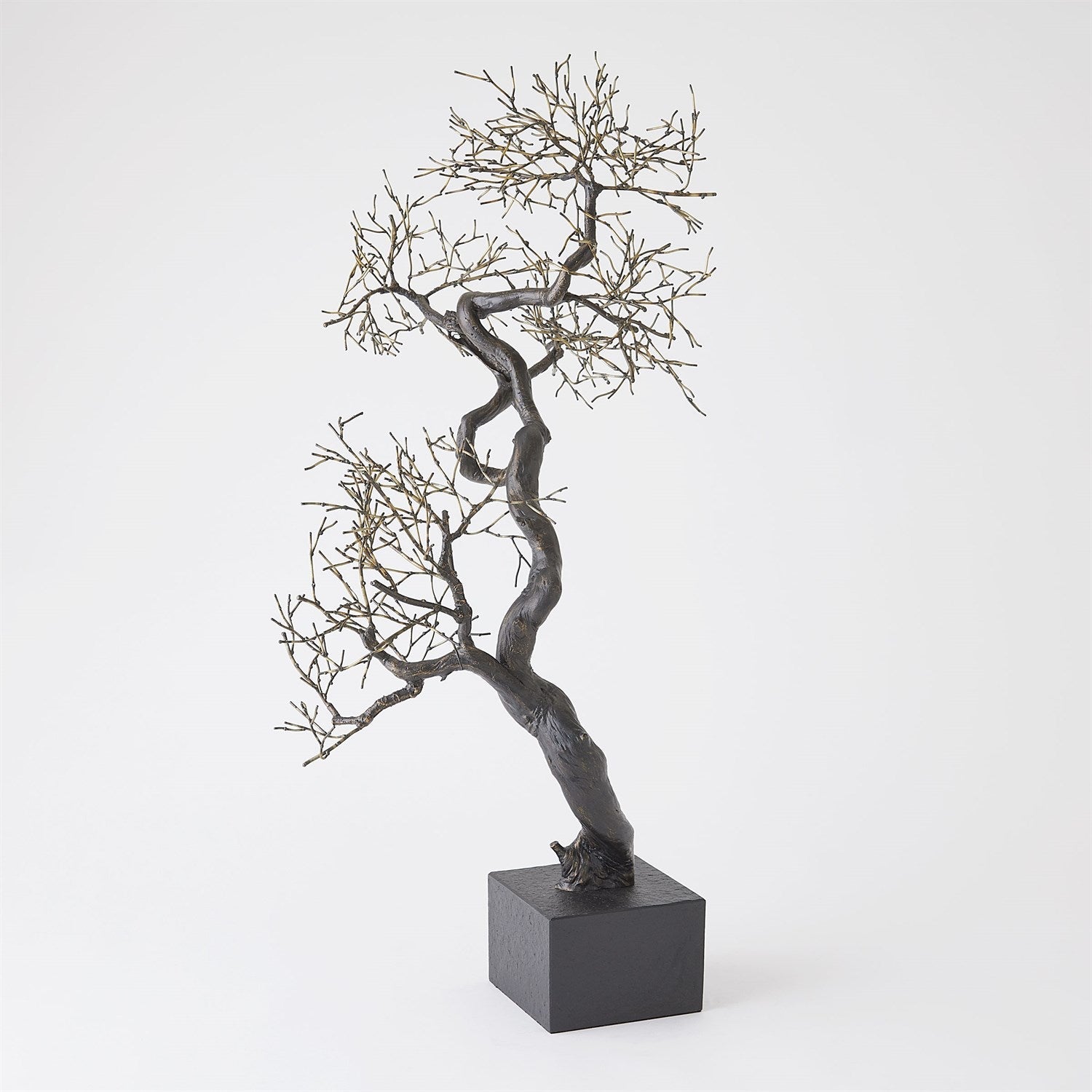 The Fuyuki Tree Sculpture is a captivating representation of nature's beauty. Handcrafted from cast iron with stunning bronze and faux brass finishes on a black marble base, it celebrates the artistry of the natural world.