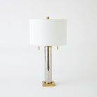 Mercury glass adds a luxurious shimmer to the Mercury Glass Table Lamp, which features an iron base finished in warm brass. A white linen hardback shade enhances elegance with simplicity.