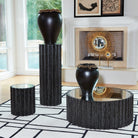The mirrored surface of the Reflective Column Pedestal displays your favorite things in elevated style. The fluted base in a black cerused oak finish creates a texture-on-texture look that is striking and sharp.