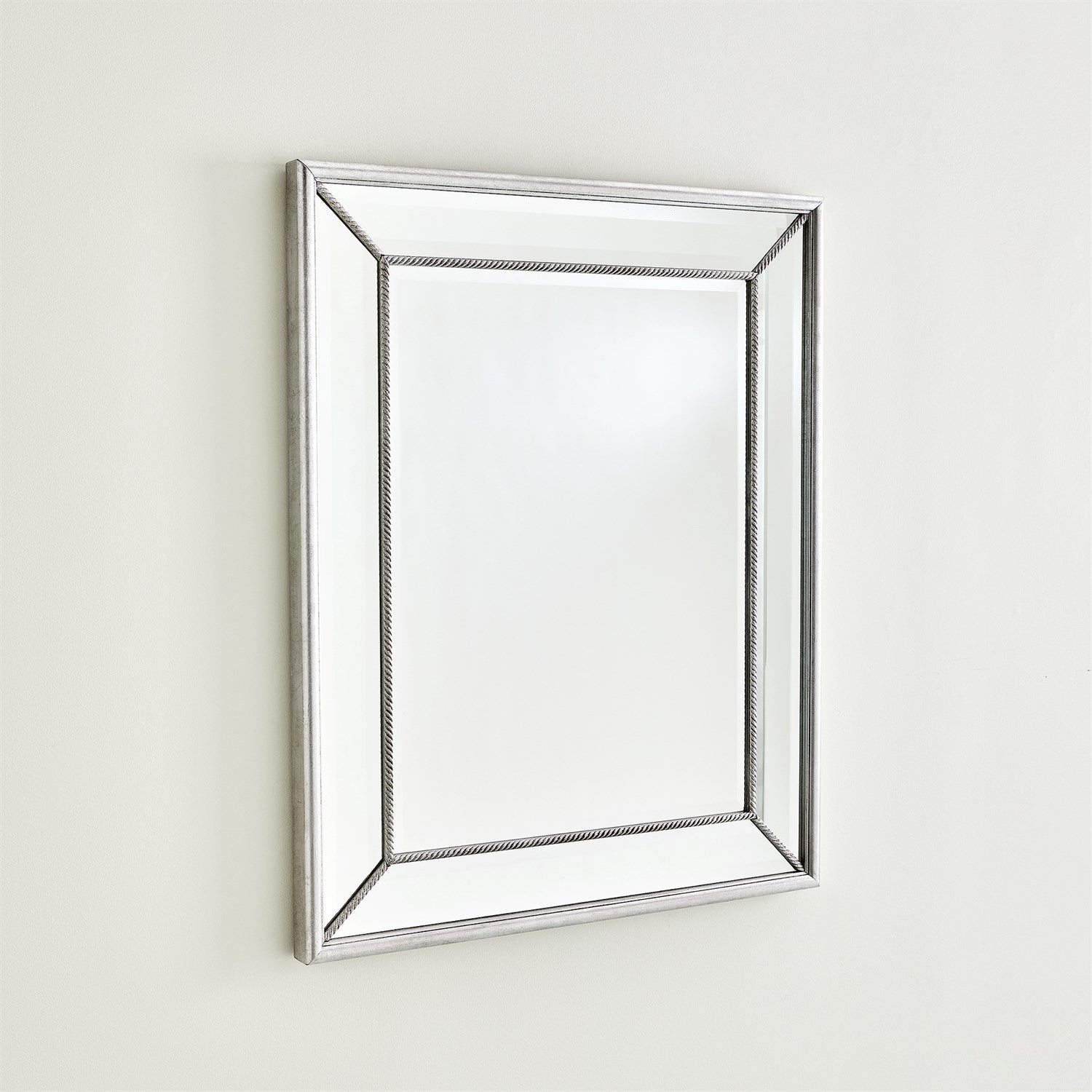 The Vermeil Rope Mirror features beautiful silver leaf details with a beveled mirror. It can be displayed both vertically and horizontally, giving you the flexibility to choose the orientation that best suits your space and design preferences.