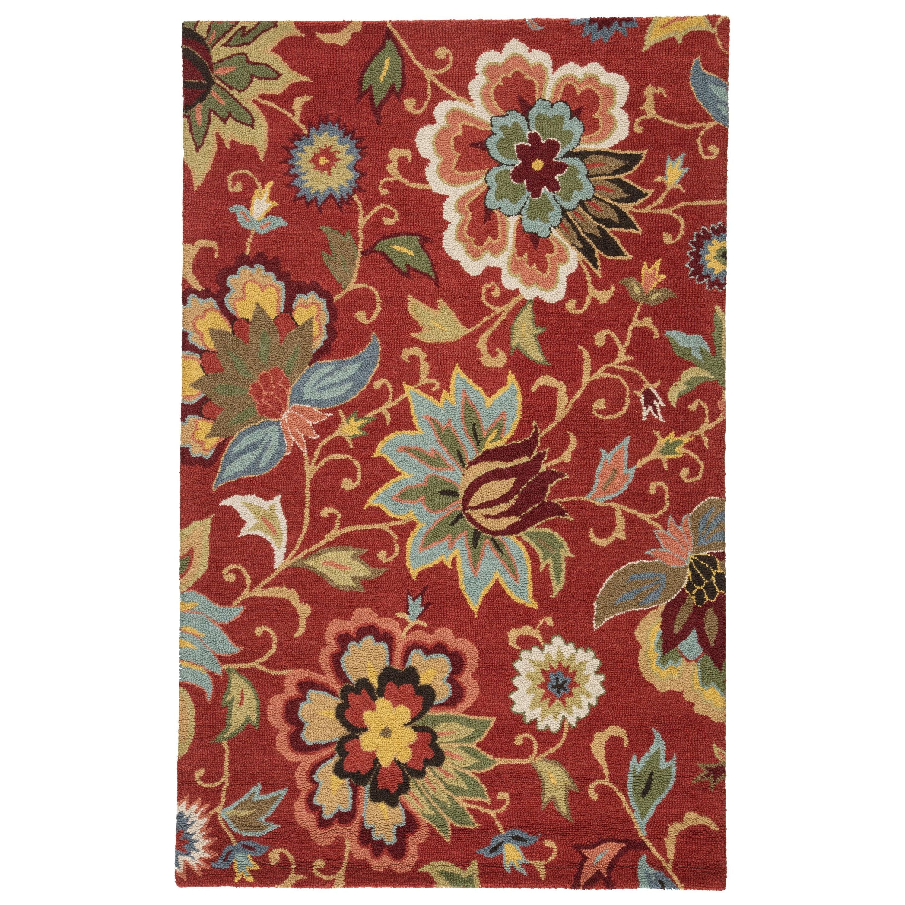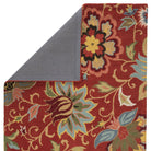 Hacienda HAC11 Zamora area rug, a timeless piece with a modern twist. Featuring paisley florals in a chic large-scale design, this hand-tufted wool rug adds a contemporary flair to any space. The vibrant combination of yellow, blue, and green blooms pops against the bold red background, creating a stunning botanical pattern that elevates the room's aesthetic.