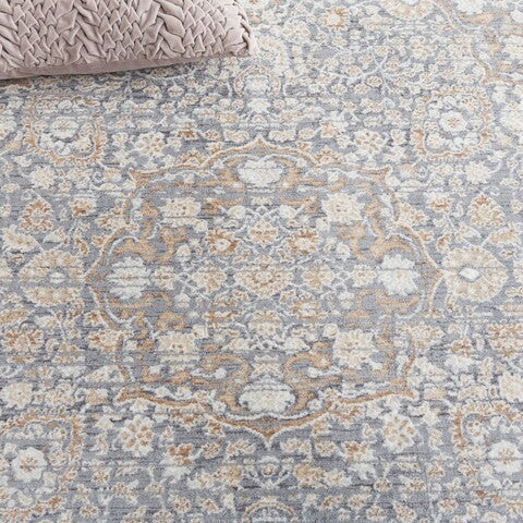 exquisite Harlow HAR108A Ivory Blue Grey rug, perfect for adding a touch of timeless elegance to your space. With its warm earth tones and classic motifs, this rug is a beloved choice among families seeking both style and durability. The decorative area rug is adorned with subtle fringes for a charming finish that complements any room decor seamlessly.