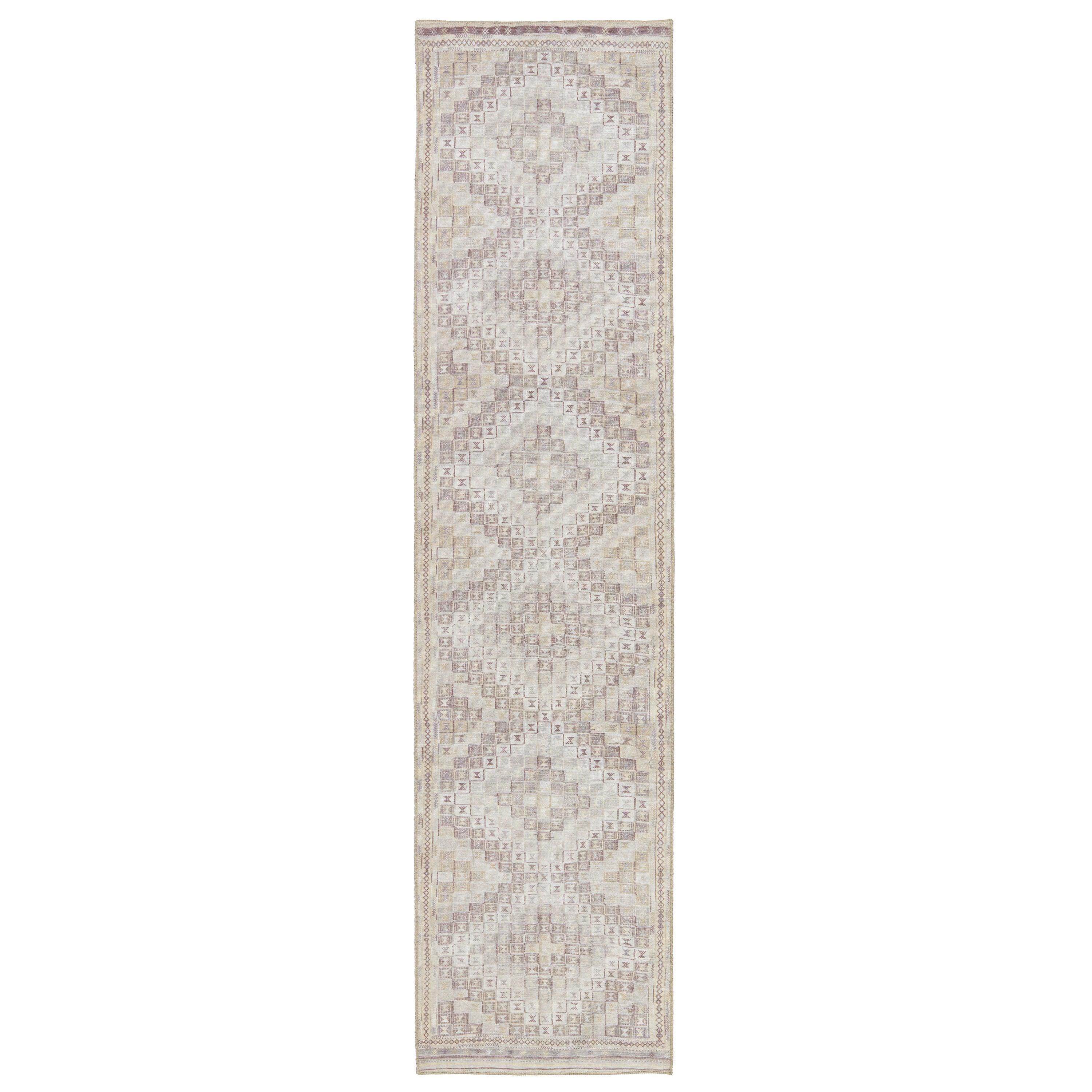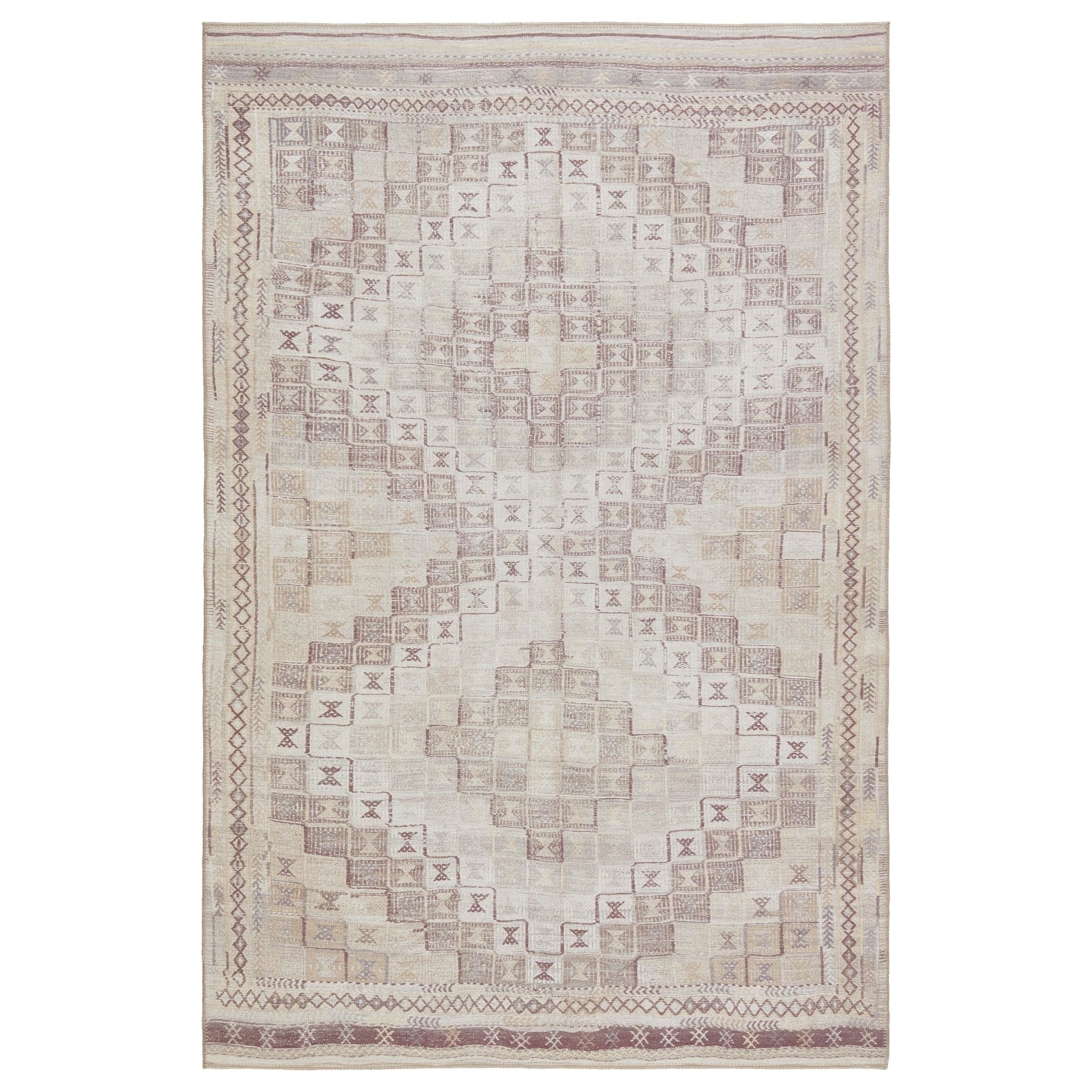 Harman HBL03 Davina from the collaboration between Kate Lester and Jaipur Living. Drawing inspiration from vintage designs, this collection offers a unique blend of antique textiles and modern livability. The Davina area rug features a tribal diamond pattern in soothing shades of beige, cream, and burgundy, adding warmth and character to any room.