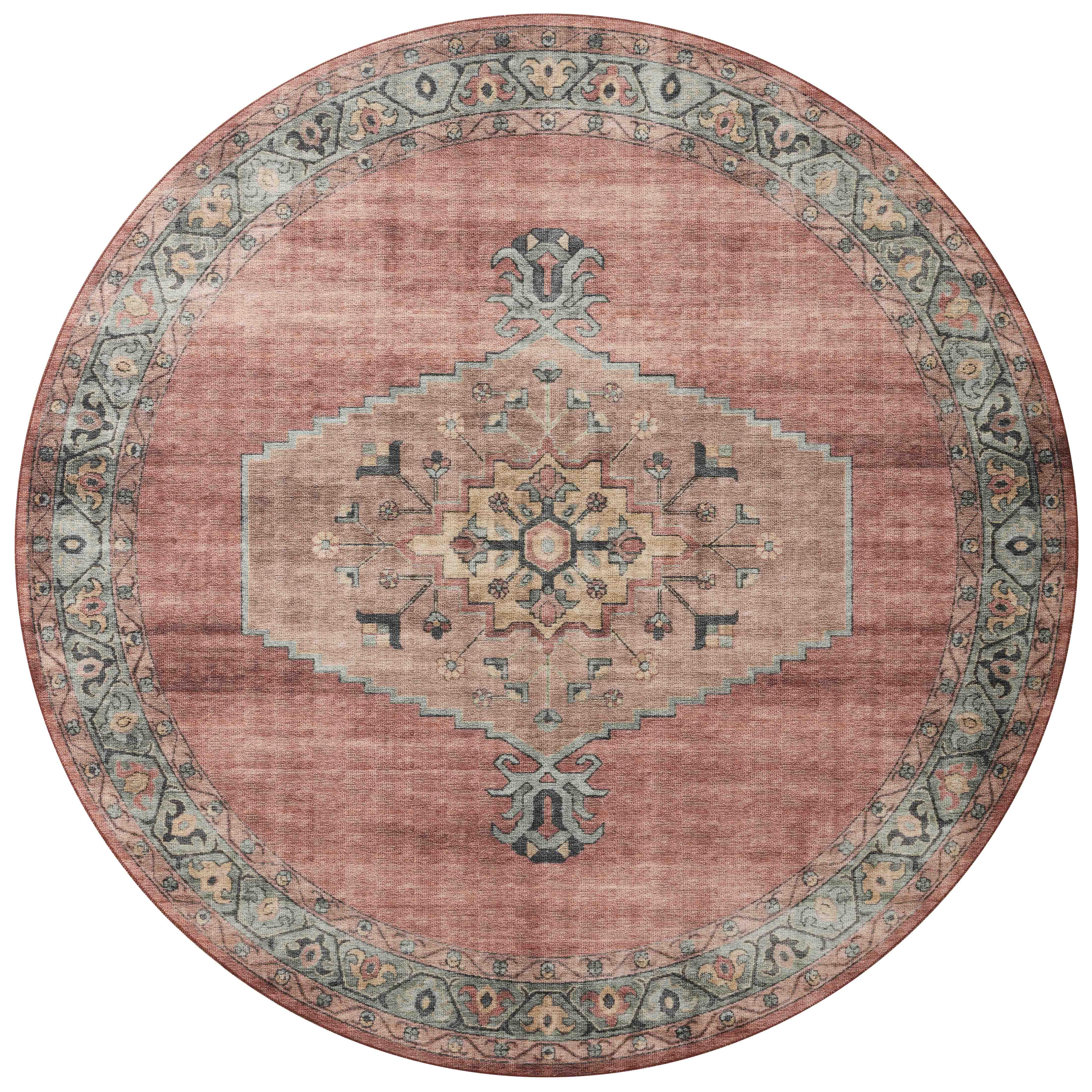 stunning Heidi Hei 05 Spice Aqua rug from the Heidi Collection, featuring intricate old-world medallions in a timeless color scheme. Crafted with precision in China using 100% polyester, this rug boasts printed designs that mimic the luxurious texture of high-end rugs, all while remaining budget-friendly.