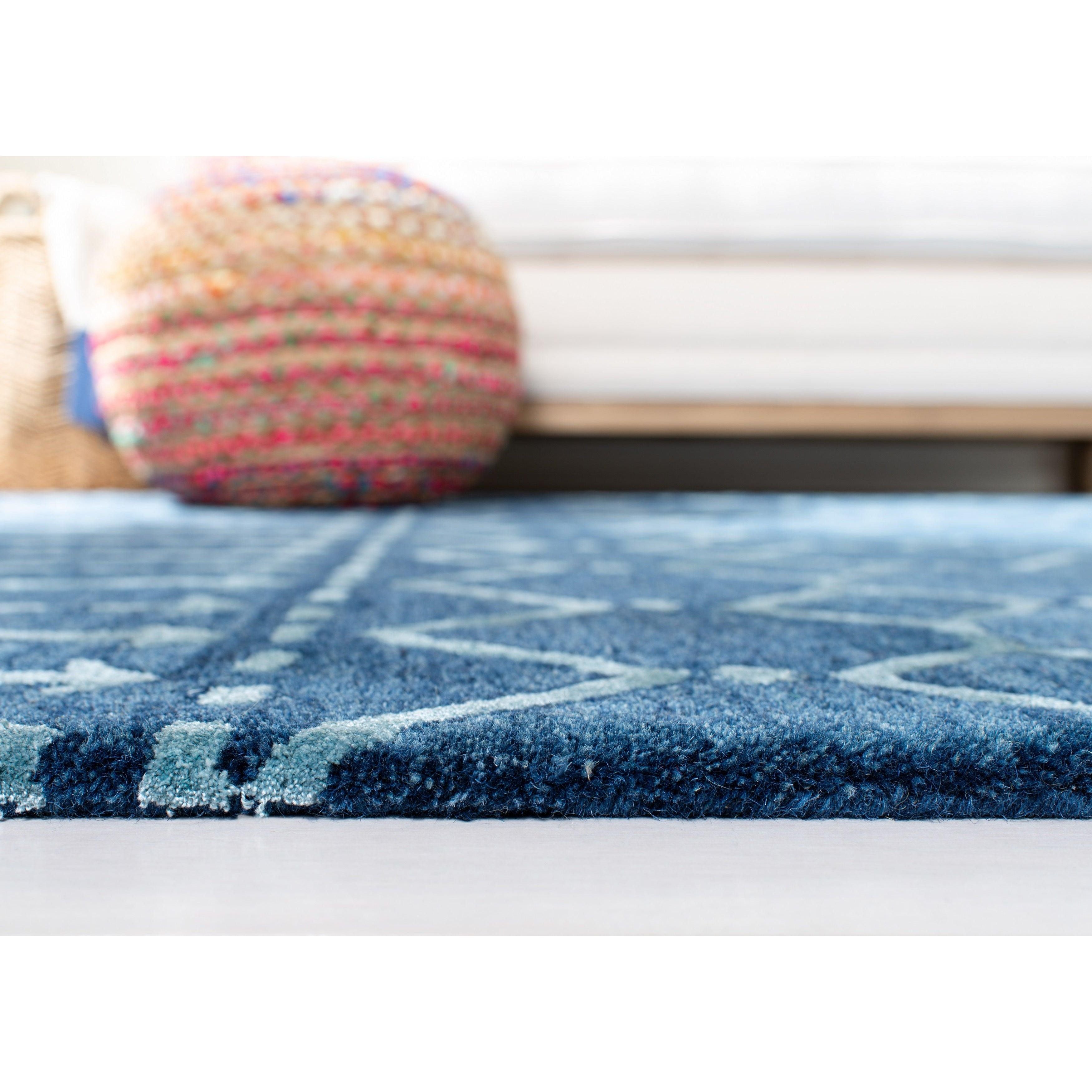 Himalaya HIM903N Navy Silver rug, inspired by contemporary Tibetan carpets for a touch of casual elegance in your home. Hand-loomed with 100% pure wool, these rugs feature a variety of heathered solids, transitional stripes, and subtle plaids to seamlessly blend with modern, bohemian, or transitional decor styles.