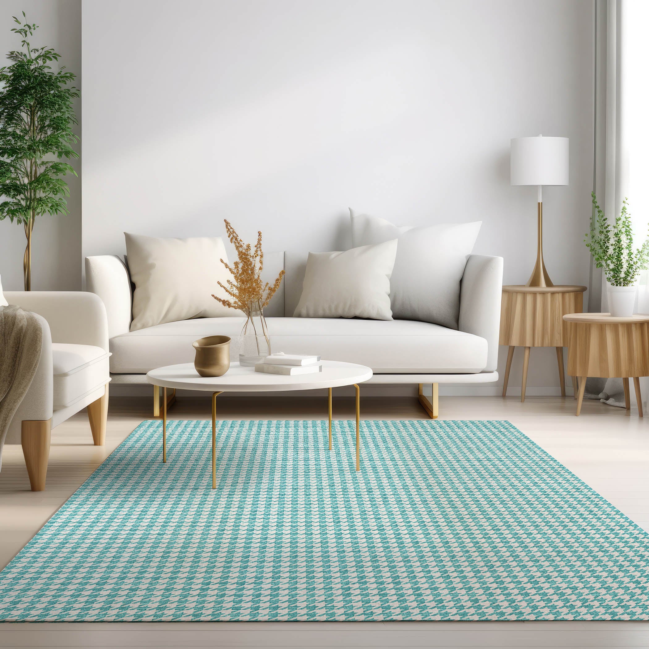 Elevate your living space with the Hinton HN1 Aqua rug, a stylish and practical addition to any home. Crafted for durability and ease of maintenance, these rugs boast a classic houndstooth pattern that complements any decor. Whether indoors or outdoors, the UV-stabilized material ensures longevity and color vibrancy, allowing you to place them wherever you desire.