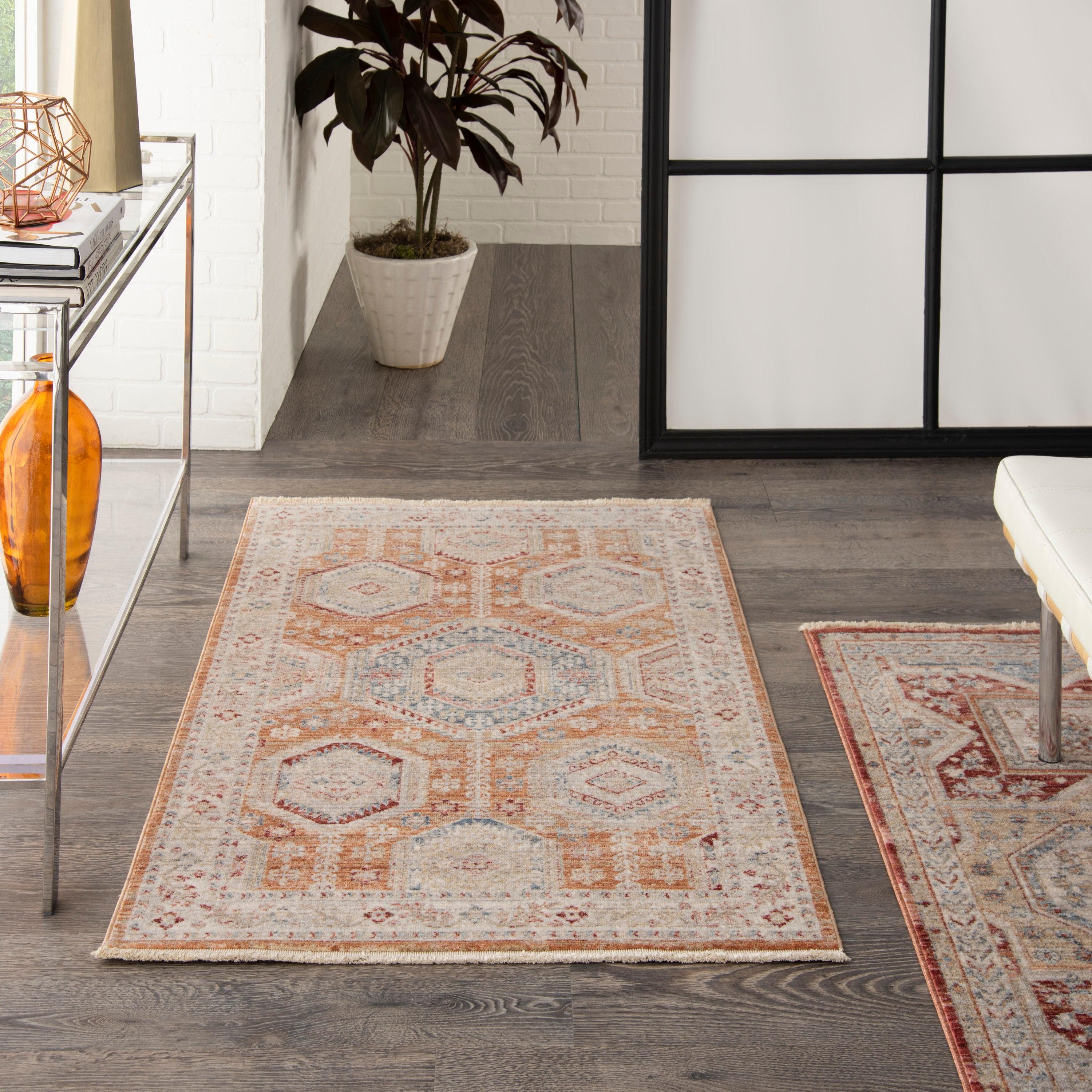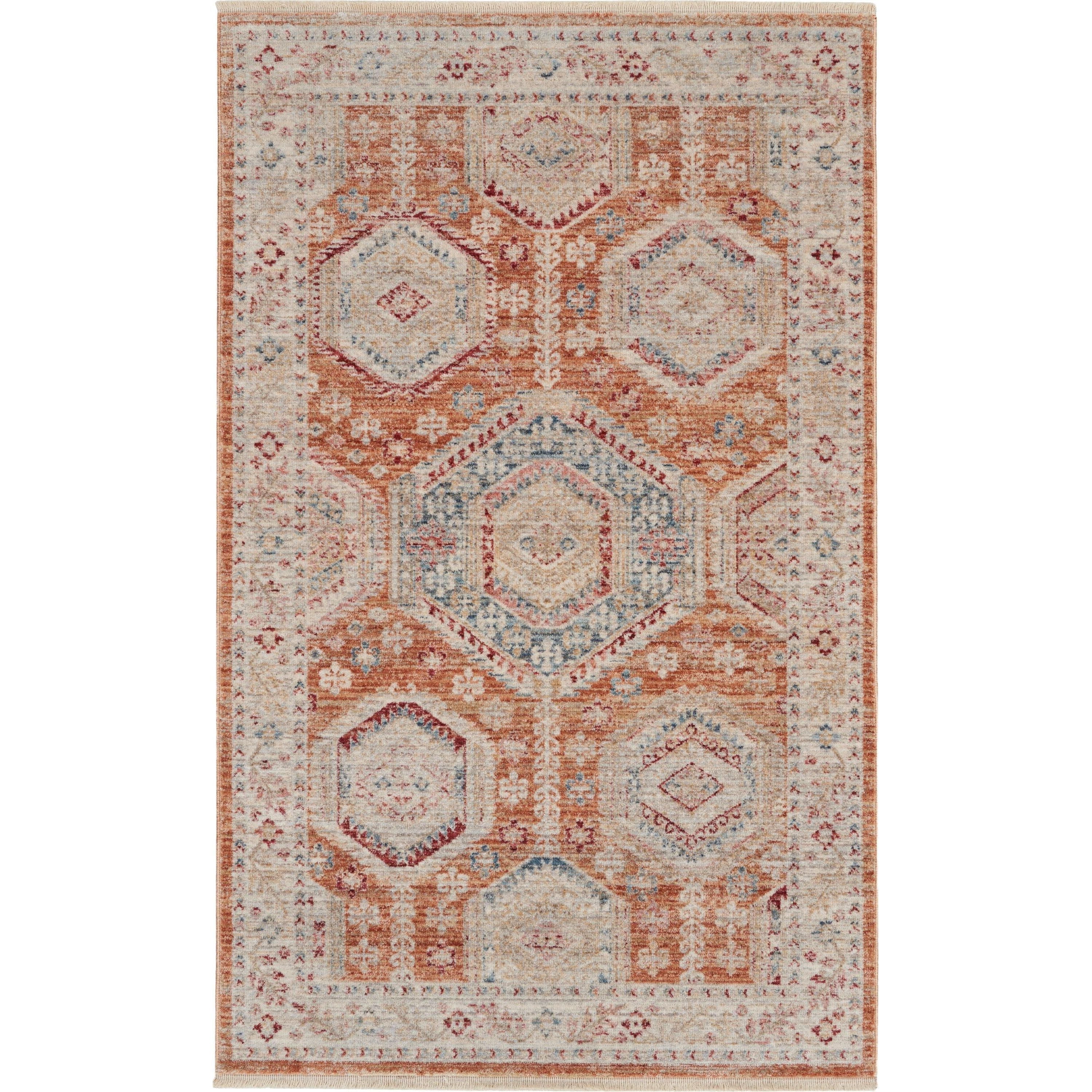 Introducing Homestead HMS01 Brick, a stunning Persian-inspired area rug collection designed to complement contemporary lifestyles. Featuring traditional geometric and floral patterns woven with modern, non-shed fibers, these rugs are finished with classic borders and a subtle fringe for an elegant touch. The soft color palette is gently faded to create a distressed vintage look that brings warmth and sheen to any room, whether it's a bedroom, living room, or family space. Homestead rugs are equipped with Nouri-Guard™ fiber protectant, ensuring resistance against most stains like food, beverages, dirt, water, and oil-based spills. Elevate your home decor with the beauty and practicality of Homestead rugs featuring Nouri-Guard protection!