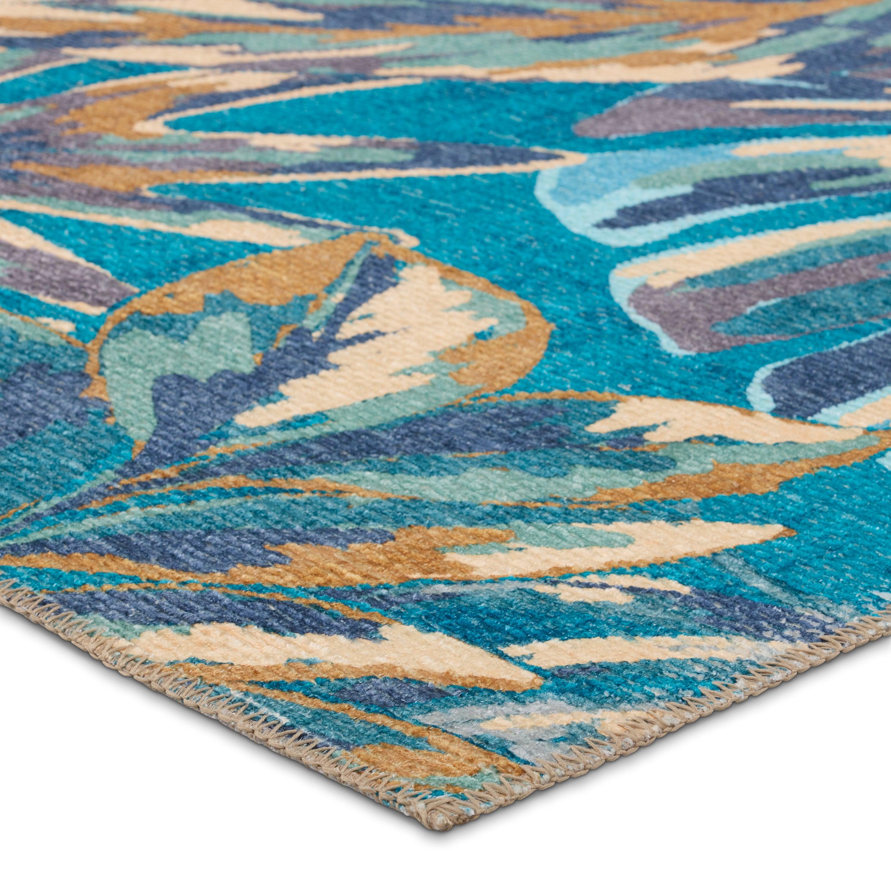 Ibis IBS08 Cantania from the vibrant Ibis collection, adding a pop of color and pattern to any indoor or outdoor setting. Crafted with durable polyester, this rug boasts fun and eye-catching designs that are built to last. The Cantania rug showcases an abstract tropical motif in striking shades of blue, cream, gray, and brown.