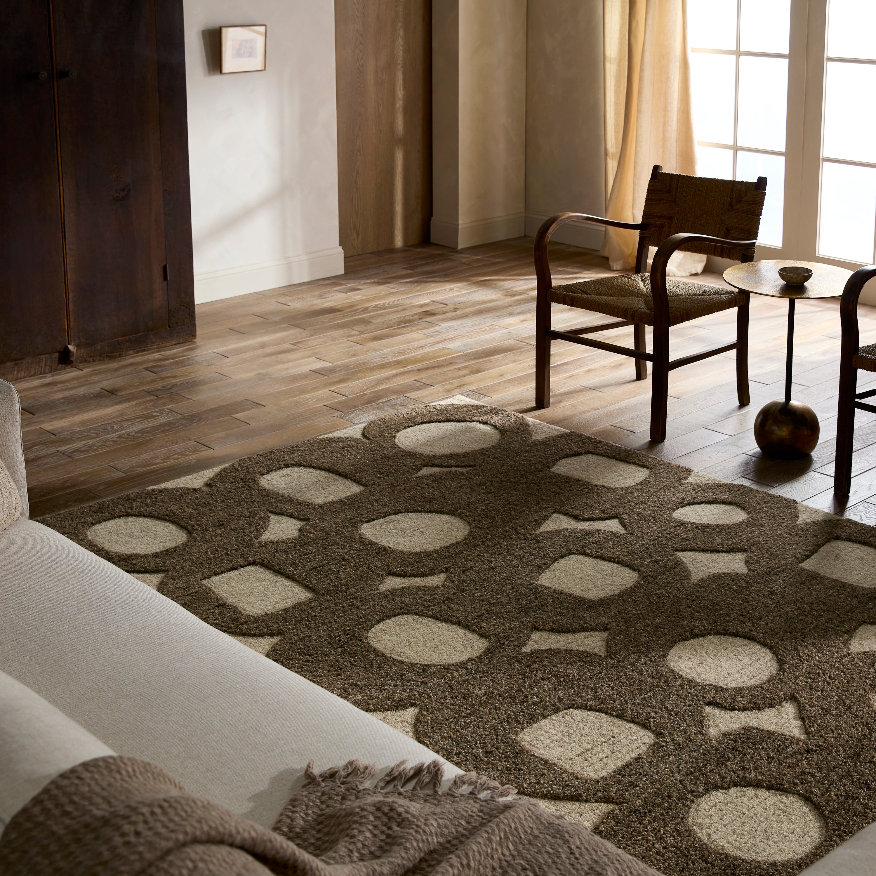 Add a contemporary flair to floors with the Reyner collection. Hand-tufted from 100% handspun, undyed wool, the plush rug features a high-low pile that accentuates its mid-century, Brutalist-inspired geometric pattern. The easy-to-match brown tones effortlessly blend into any setting.