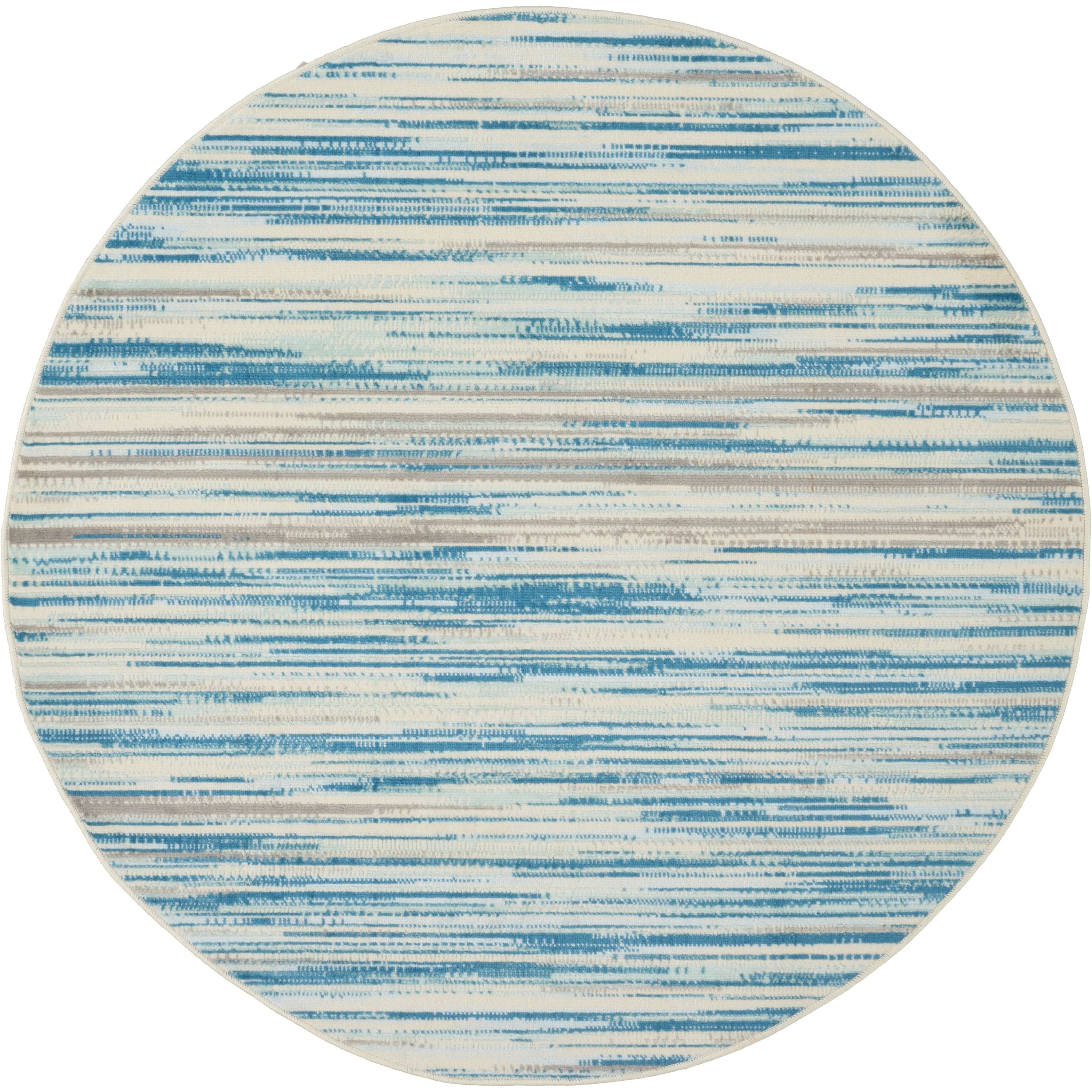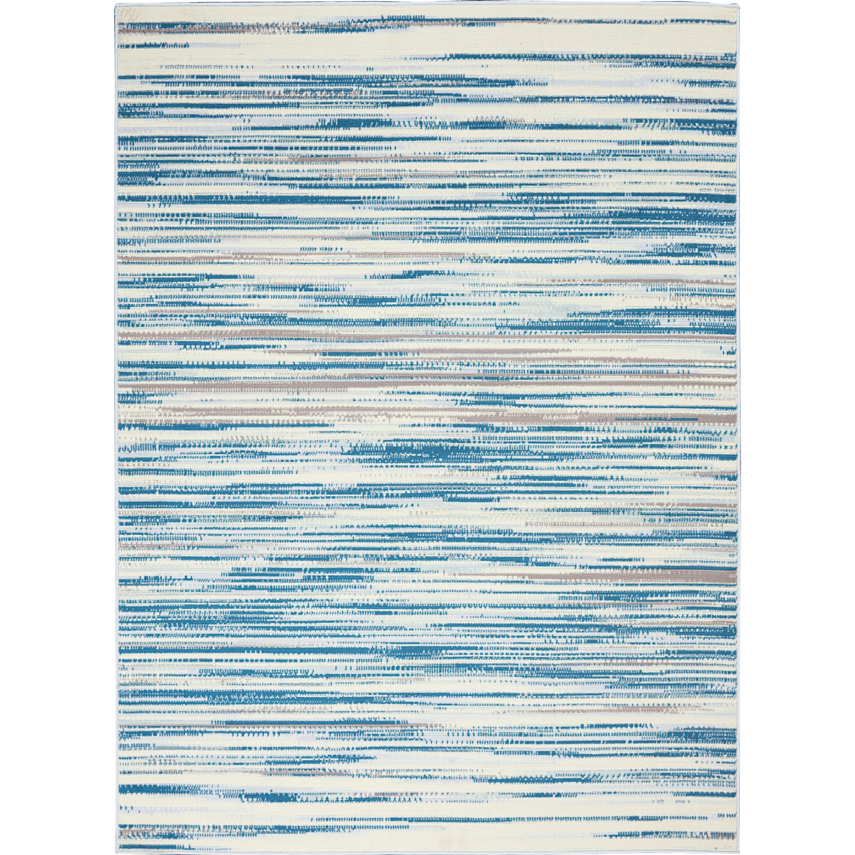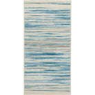 Jubilant JUB04 Blue hallway runner rug from Nourison's Jubilant Collection. This rug features striated teal blue and grey brushstrokes, adding a beachy and modern touch to your space. The sleek, low-pile construction is made from easy-care fibers, making it a practical and stylish choice for any room in your home.