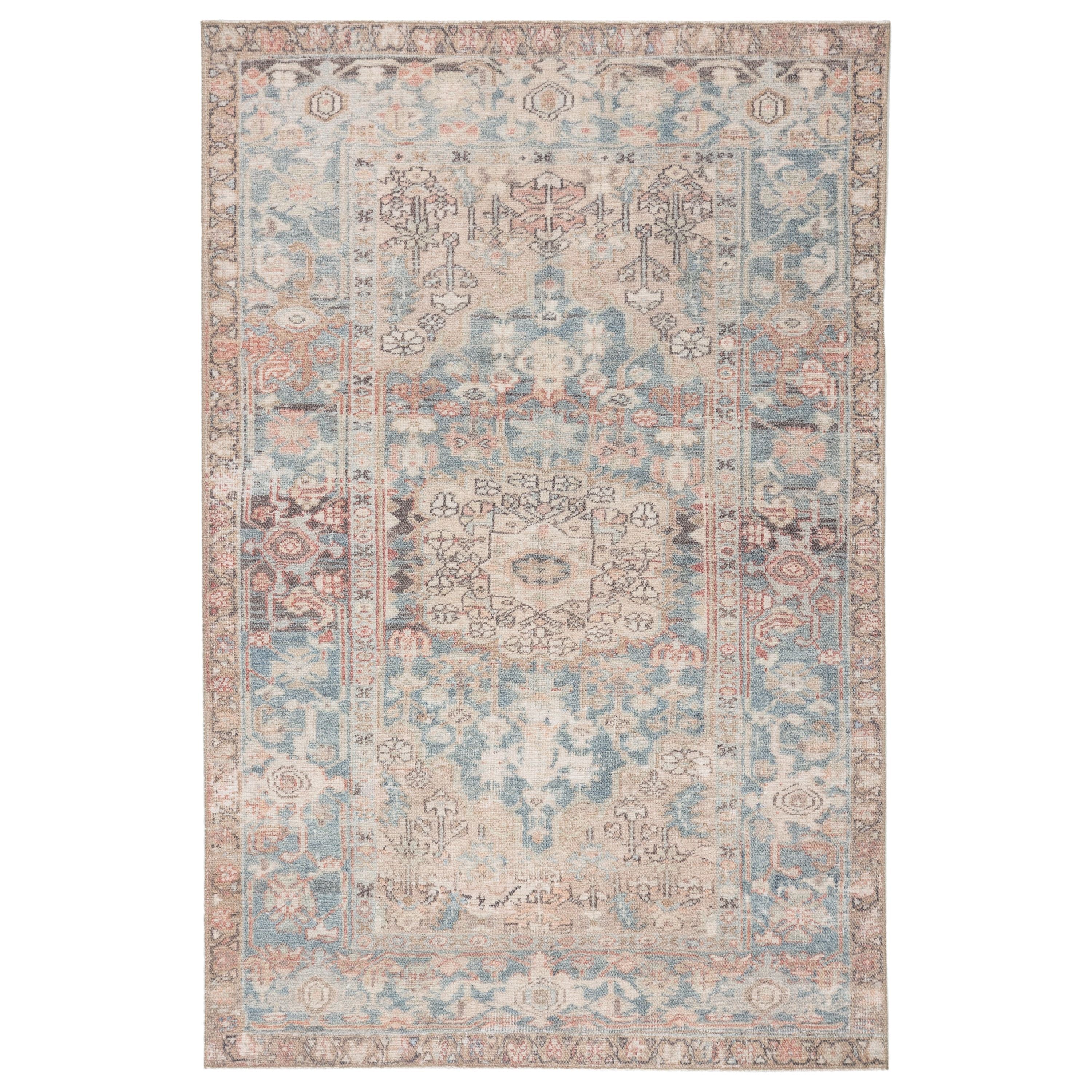 Kindred KND05 Geonna from our exquisite collection, blending vintage charm with contemporary appeal. The Geonna area rug showcases a gracefully faded center medallion and delicate floral patterns in calming shades of blue, gray, beige, and blush. Crafted from plush polyester, this low-pile rug exudes comfort and sophistication. Its unique antique rug design is digitally printed for a one-of-a-kind touch that will elevate any space effortlessly.