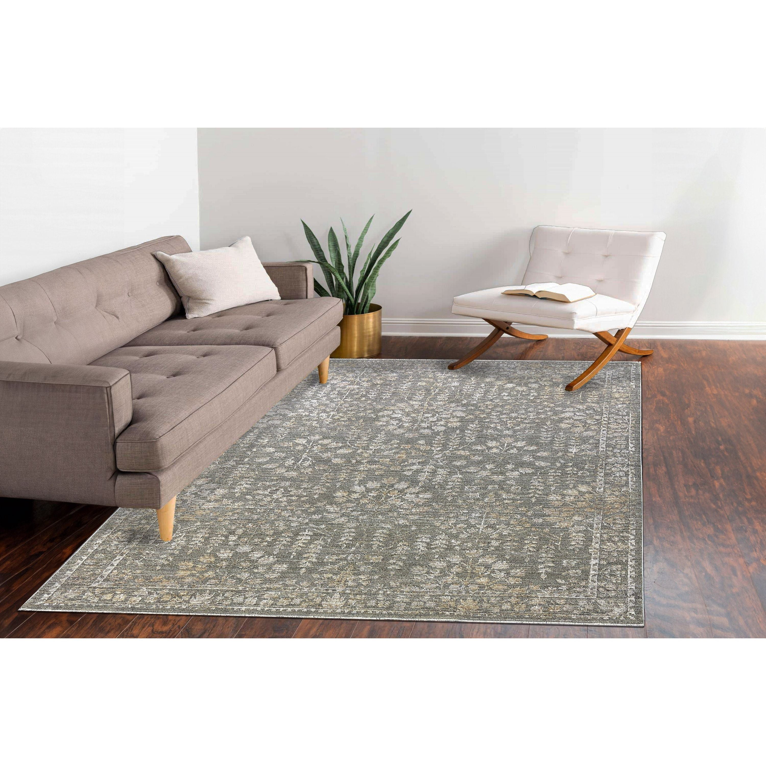 Bring a touch of artistic charm to your space with our Kyra collection. Featuring a subtle overall flowery design, this rug blends earthy tones with subtle shades of blue and deep burgundy, creating a beautifully layered, organic look.
