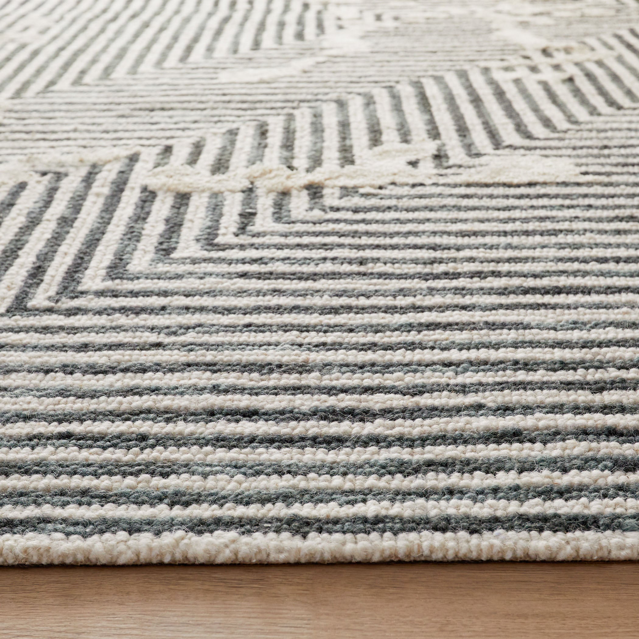 The Vani collection combines natural designs with textural craftsmanship. These black and natural geometric rugs, made from a wool blend and organically soft materials, seamlessly fit into any high-traffic indoor space. Eco-friendly and stain-resistant, the Vani collection is also hypoallergenic, hand-tufted, and is incredibly soft underfoot.
