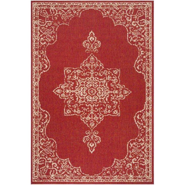 stunning Linden LND180Q Red Creme rug from Safavieh's Linden collection. This exquisite piece features timeless geometric and oriental patterns in neutral colors, adding a touch of elegance to any room. Crafted with enhanced polypropylene, this area rug is not only visually appealing but also easy to maintain, making it the perfect choice for busy households.