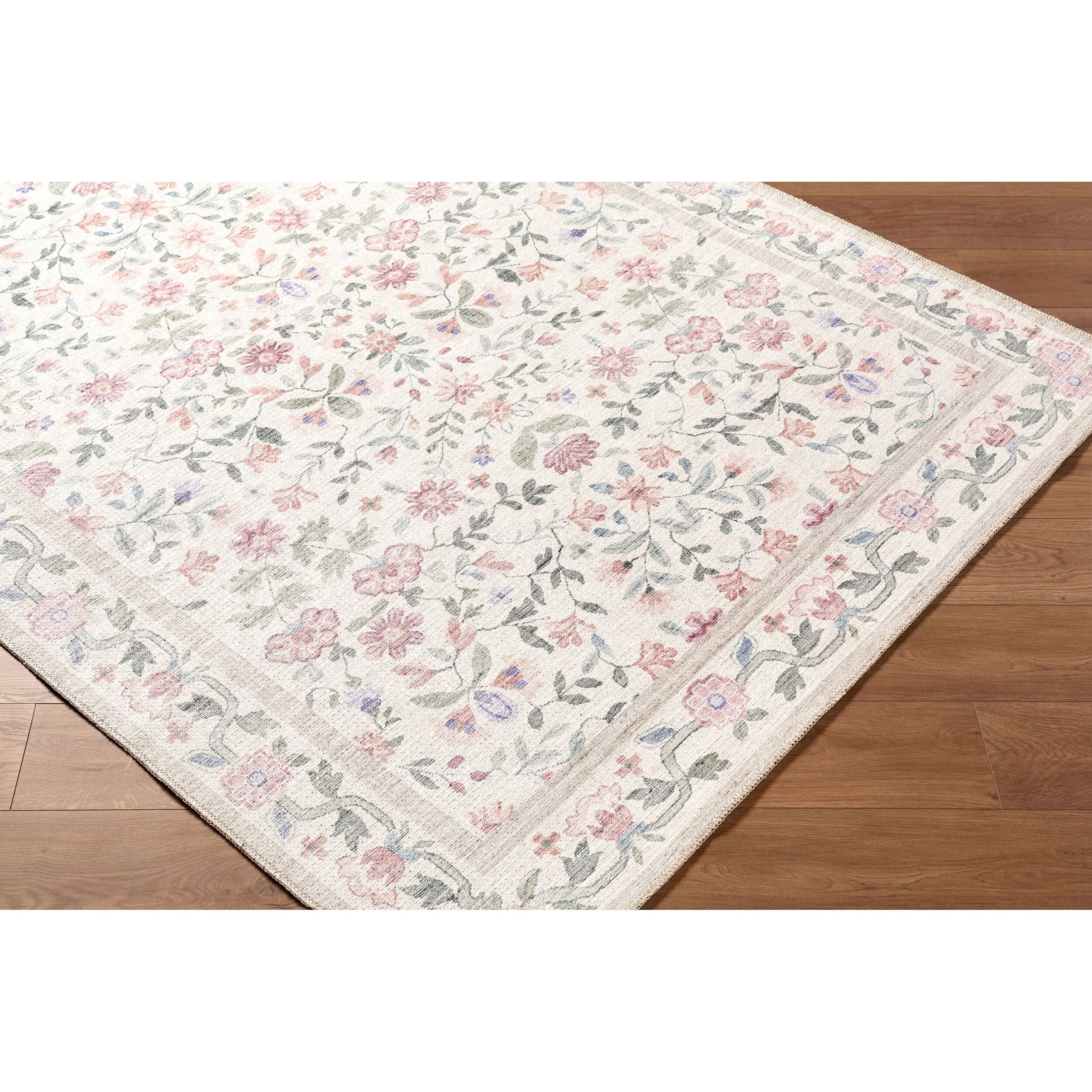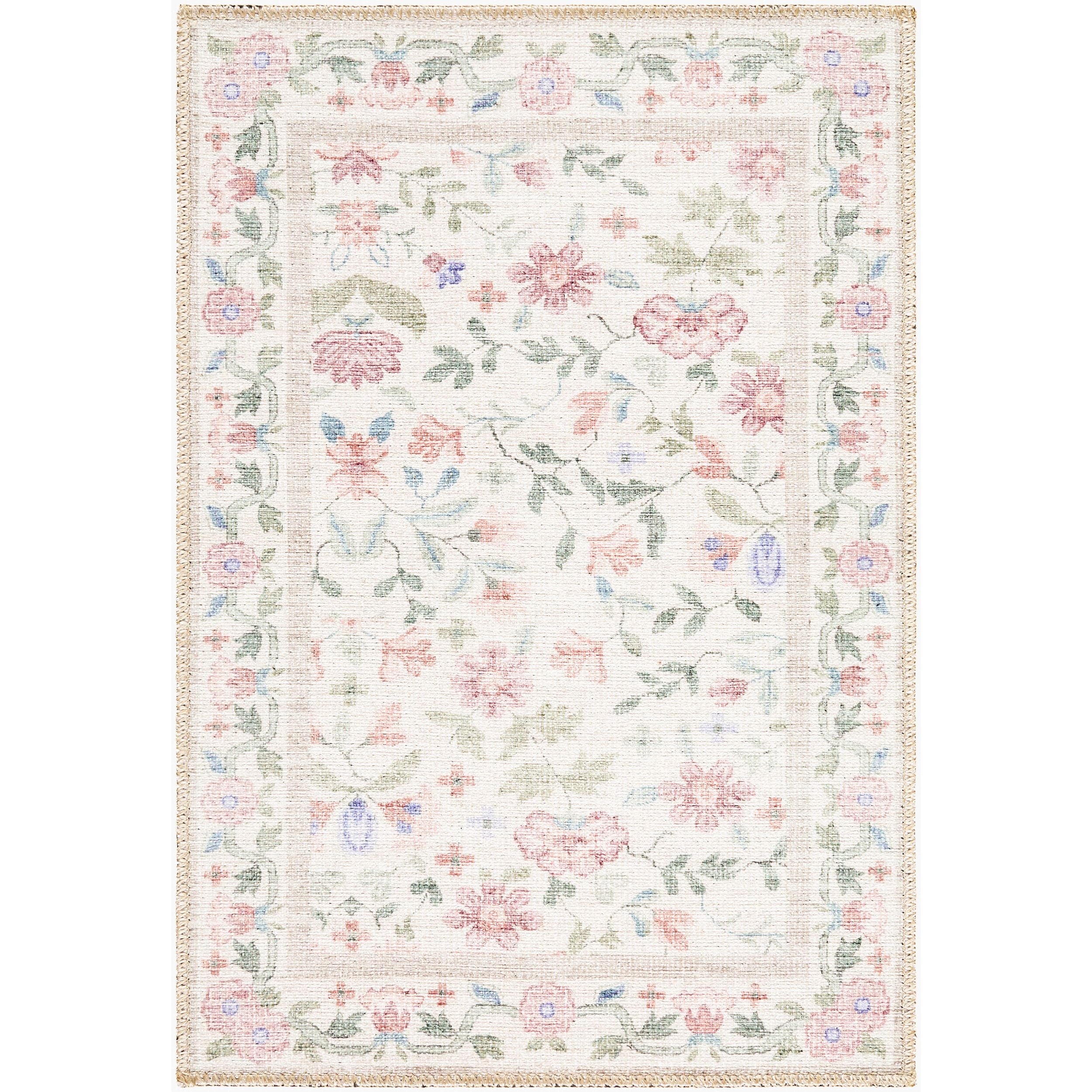 Detailed Colors: The prominent colors in the rug are: 'Ivory, Blush, Sage, Lavender, Sky Blue'