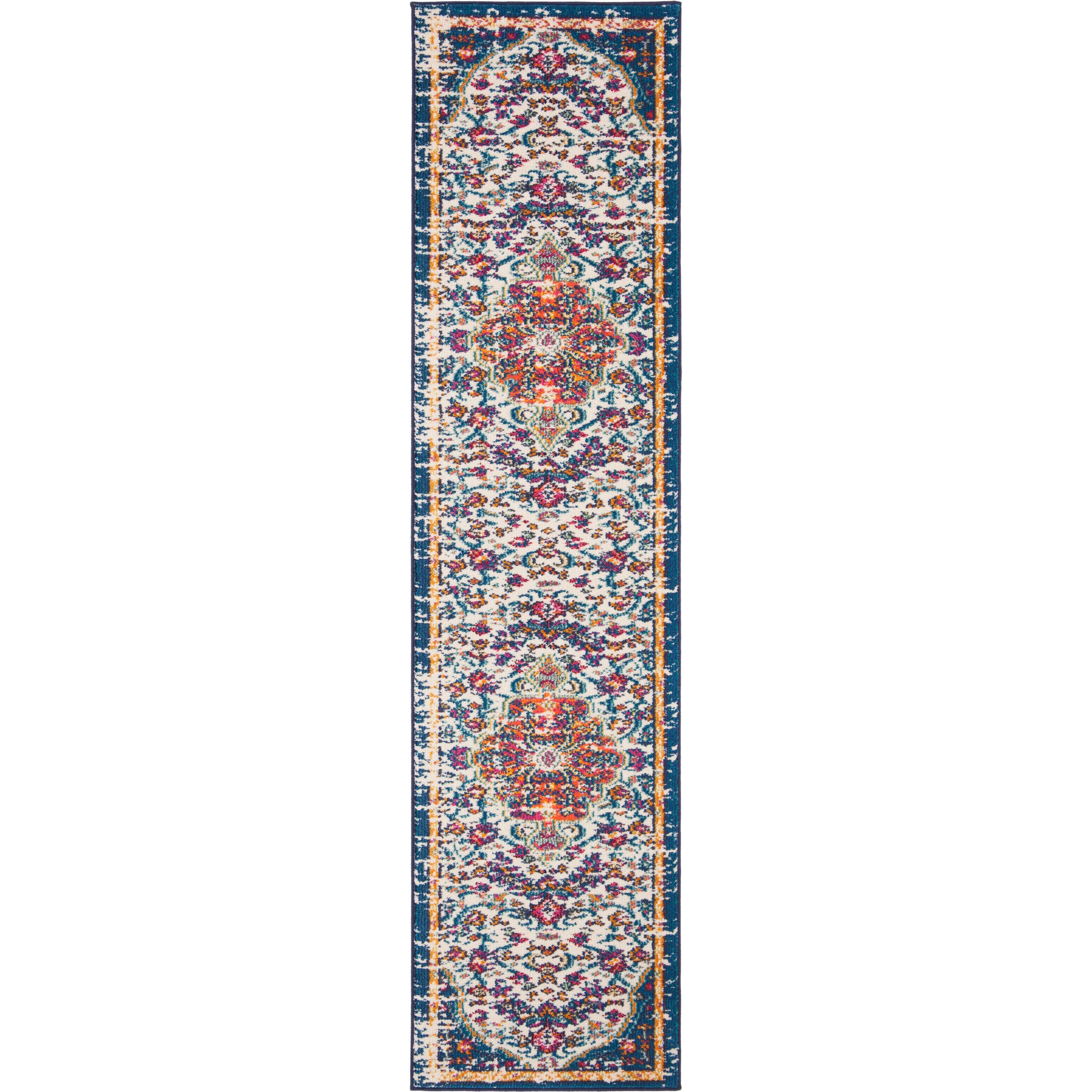 Madison 400 MAD447A Ivory Orange rug from SAFAVIEH's esteemed Madison Collection. This transitional piece breathes life into any space with its trendsetting design. The rug features a regal medallion accented by intricately detailed rosettes, exuding timeless elegance and sophistication. Crafted with expert precision through machine weaving, this rug is low maintenance and sheds minimally. Its versatile style complements various decor themes, from rustic farmhouse to contemporary boho, making it a perfect addition to any room. With an approximate thickness of 0.375 inches, this rug adds plush comfort underfoot.