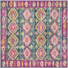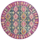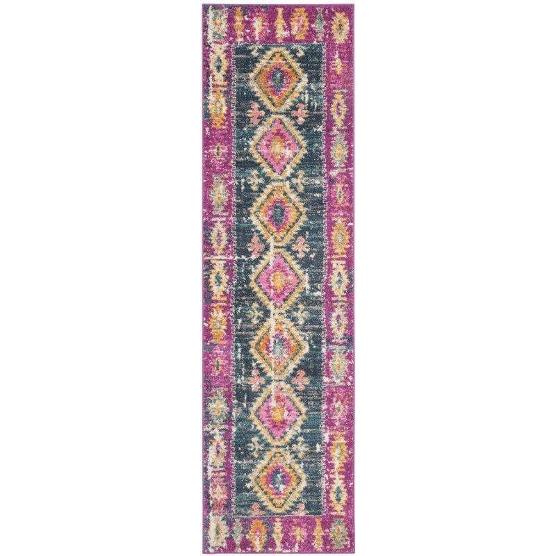 Madison MAD129F Fuchsia Blue area rug, a perfect blend of traditional elegance and modern flair. This stunning floor covering features a mesmerizing pattern of floral medallions in shades of blue and orange, creating a unique gradient effect. The distressed finish adds a touch of vintage charm, giving it an heirloom-like quality that will enhance any room decor.