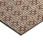 Elevate your living space with the Marlo MO1 Paprika rug featuring a trendy squares pattern that brings a modern flair to any room. Crafted for versatility, these rugs are UV-stabilized, making them suitable for both indoor and outdoor use. The slim chenille weave not only adds a chic touch but also ensures quick air-drying post washing, ideal for busy homes. With a non-skid backing, these rugs offer a secure surface for your family and pets, promoting safety. Sizes under 5’ x 7’6” are machine-washable, while larger sizes are recommended for commercial washing machines to maintain their quality over time. Upgrade your space effortlessly with this stylish and practical rug option.